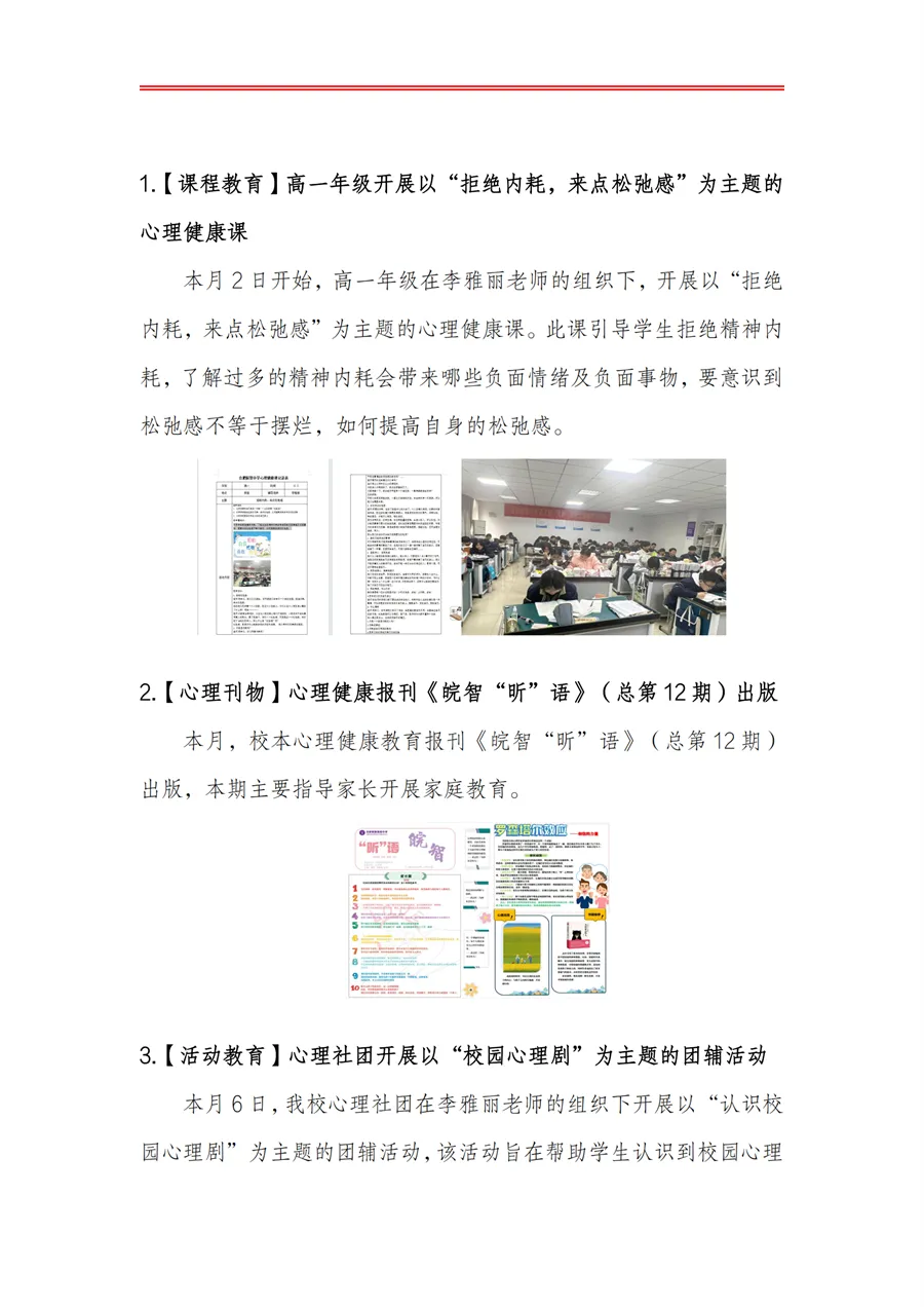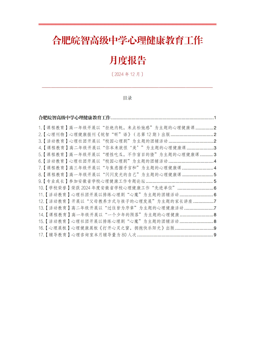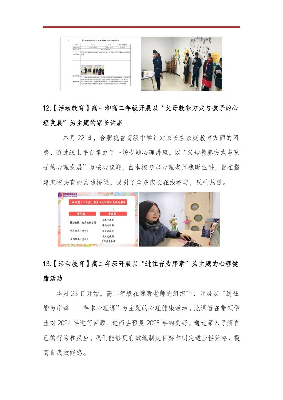 >合肥皖智高级中学心理健康教育工作月度报告(24年12月)