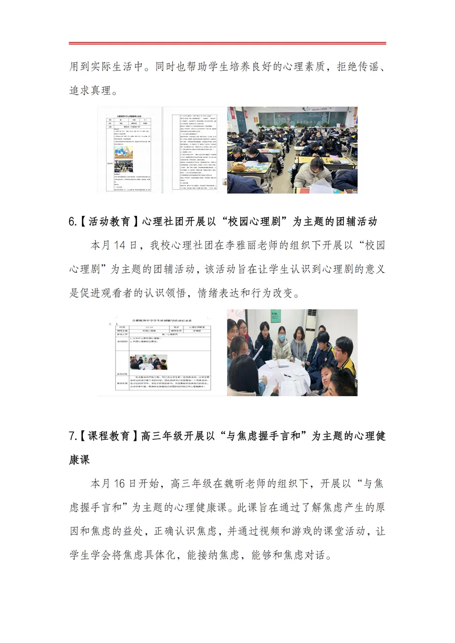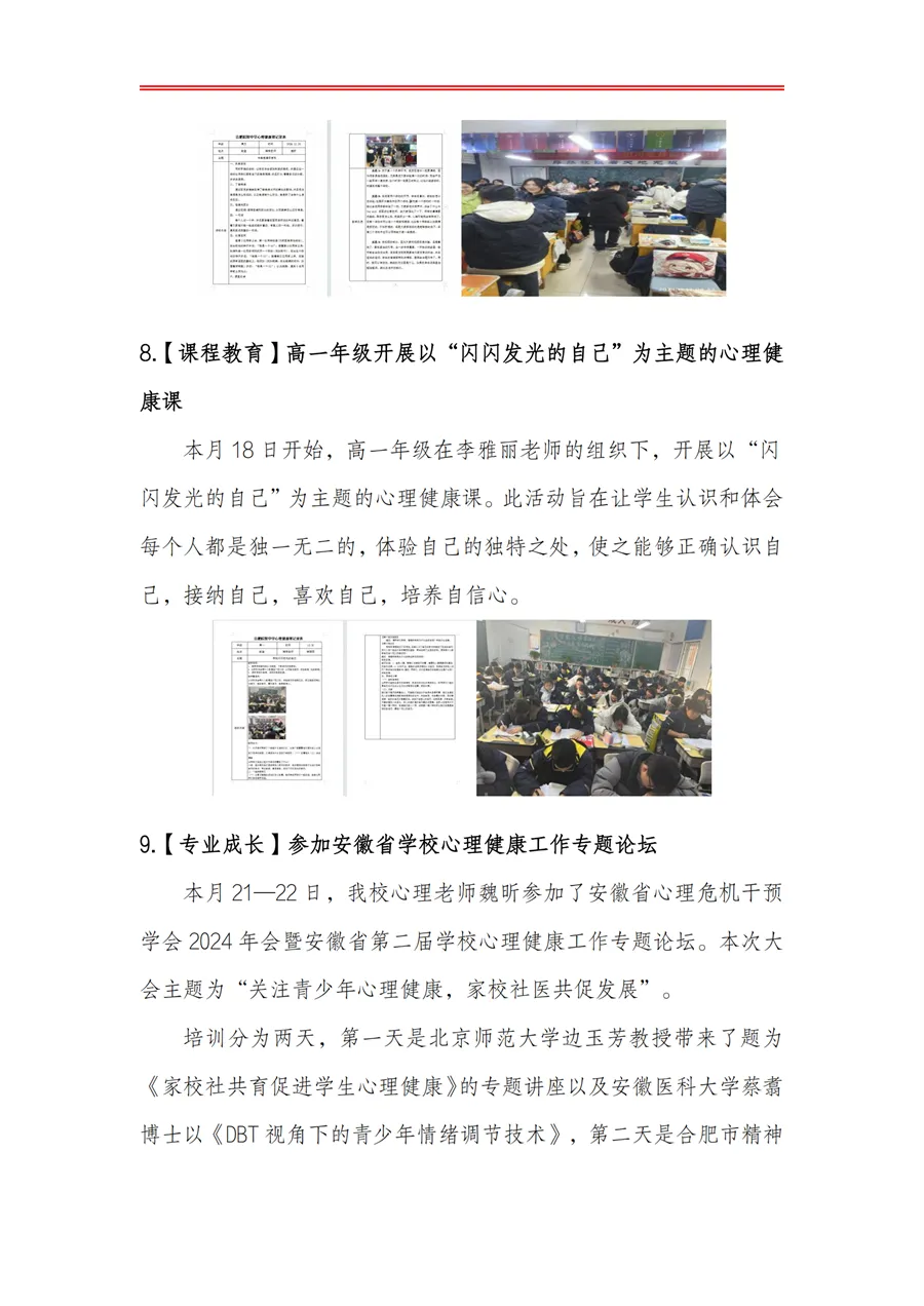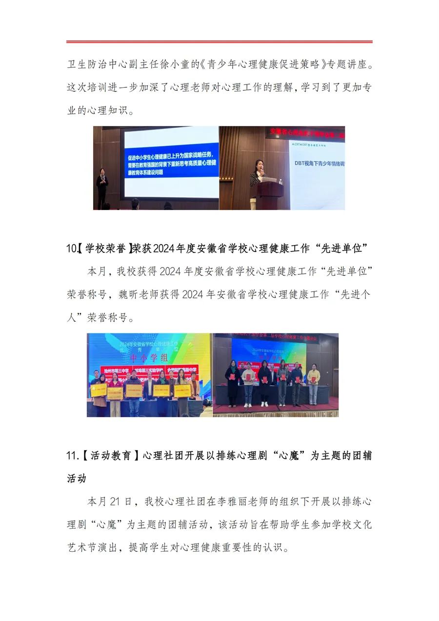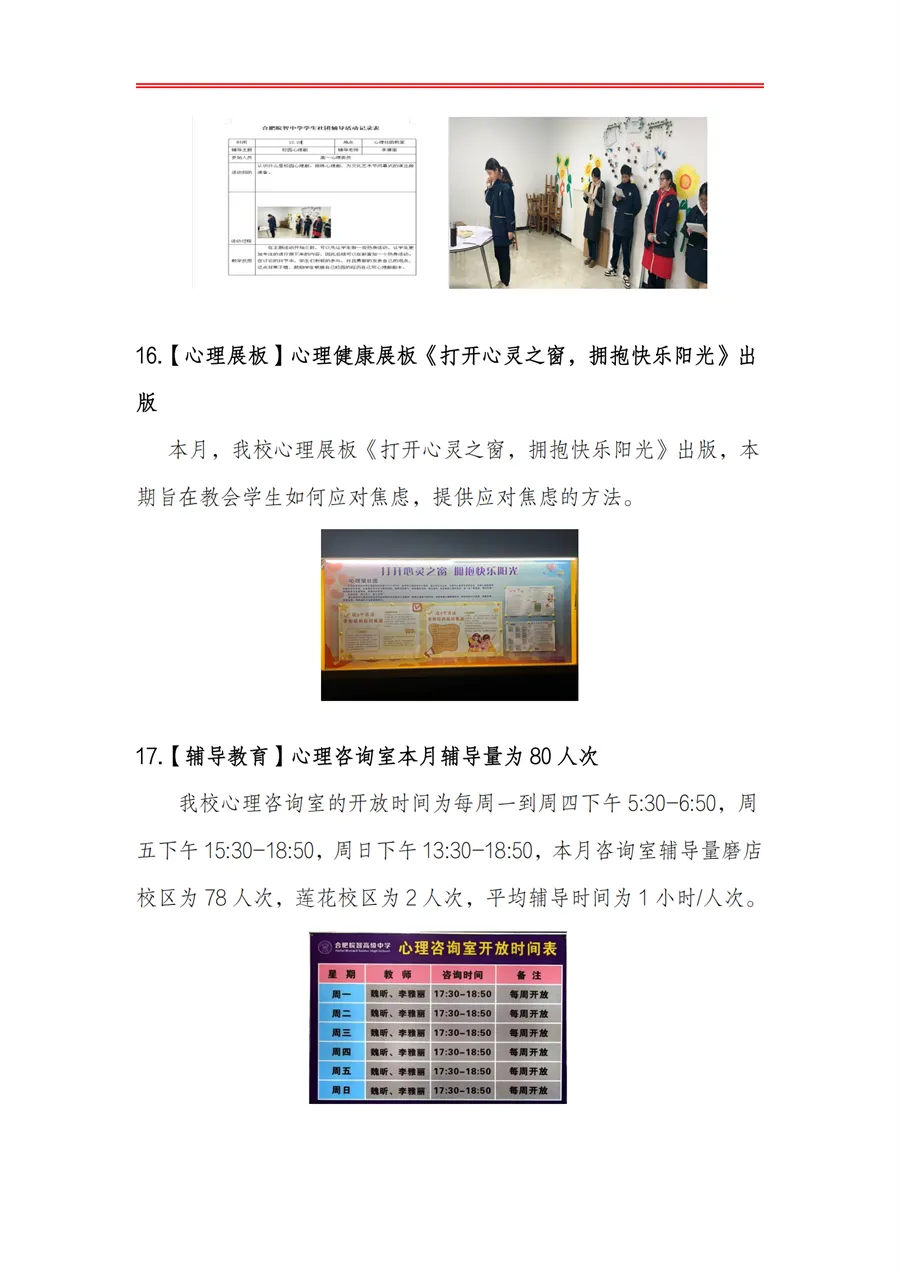 >合肥皖智高级中学心理健康教育工作月度报告(24年12月)