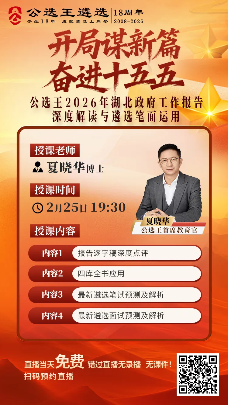 明晚 19:30,夏晓华与你不见不散,带你吃透政府工作报告,拿下2026湖北遴选笔面高分!