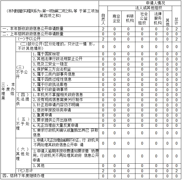 三、收到和处理政府信息公开申请情况