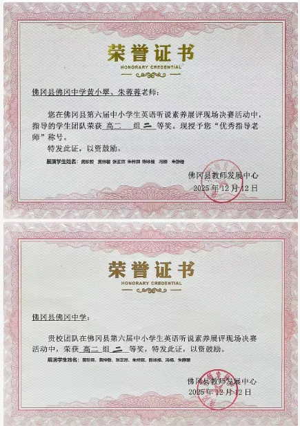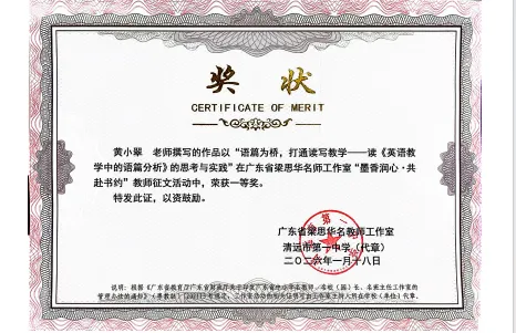 (二)教学案例获评佳绩。提交的教学案例获清远市融合创新案例二等奖,体现了信息技术与英语教学融合的探索成效。
