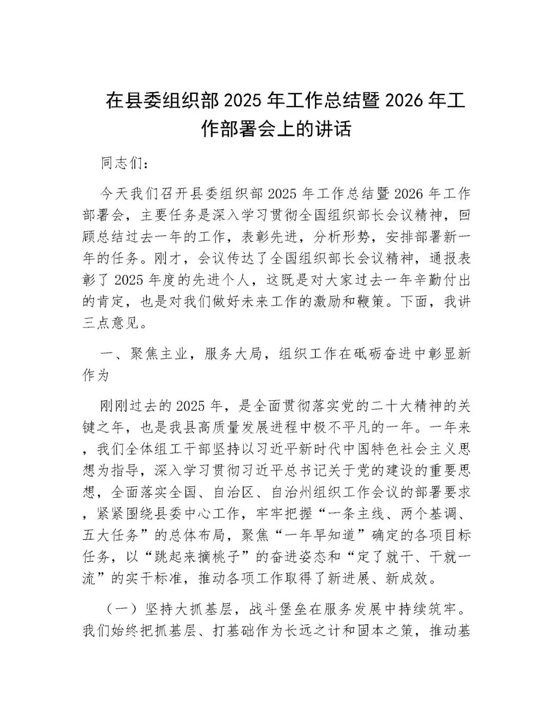>在县委组织部2025年工作总结暨2026年工作部署会上的讲话