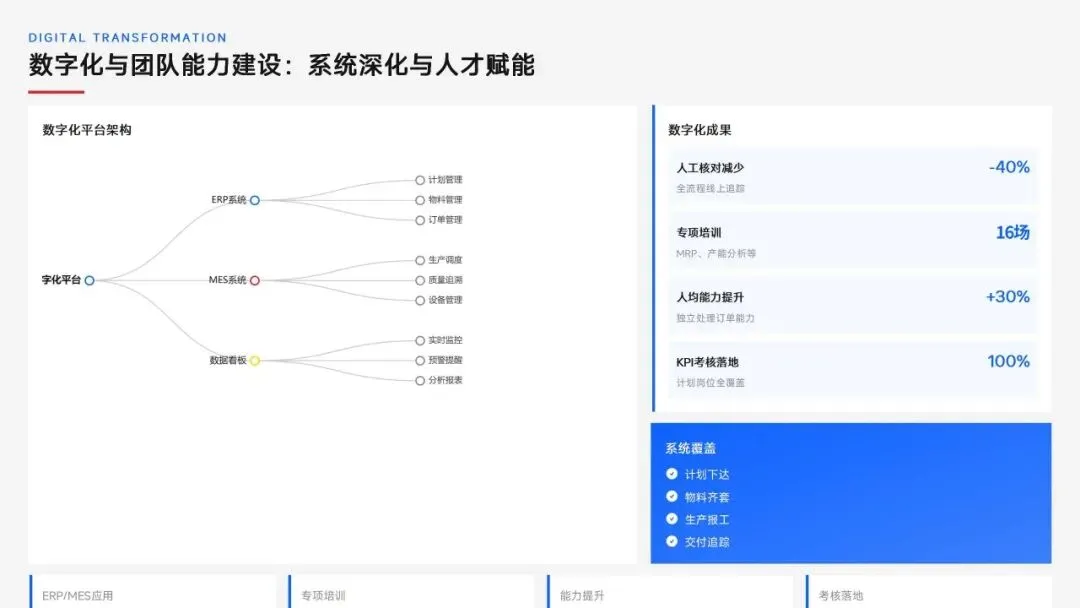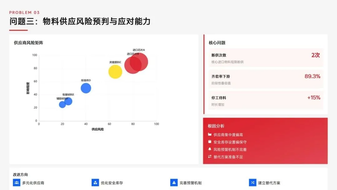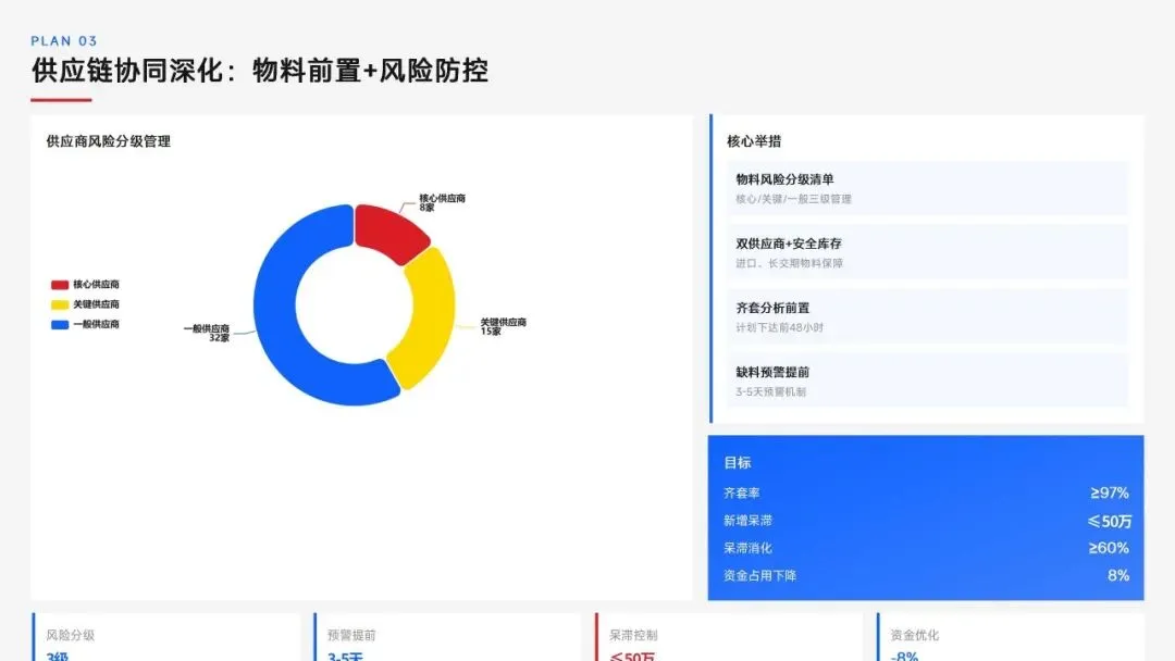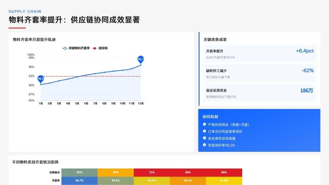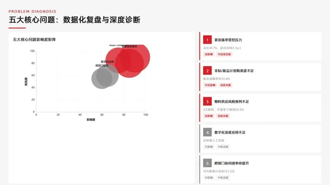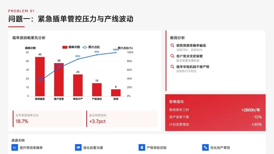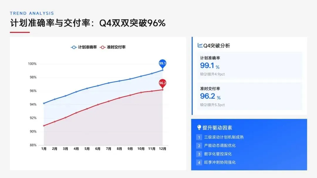 生产计划部 2025 年度工作以订单交付、产能优化等五大核心目标为导向,实现生产计划准确率、订单准时交付率等七项核心 KPI 全面改善,在计划体系、产能统筹、供应链协同等六大领域取得量化突破,核心指标迈入行业中上水平。同时复盘出紧急插单管控、非标新品计划精准度不足等五大核心问题并完成根因剖析。2026 年部门锚定计划准确率≥99%、交付率≥98% 等七大核心 KPI 目标,确立精准计划、高效产能等五大战略支柱,规划计划体系升级、产能柔性提升等七大重点工作,配套制度、系统、资源、考核四大保障体系,以数字化、标准化、协同化打造高效柔性的生产计划管控体系,为公司整体经营目标达成筑牢生产计划支撑。十五五规划编制实战指南:7大工具+案例,破解企业战略迷局