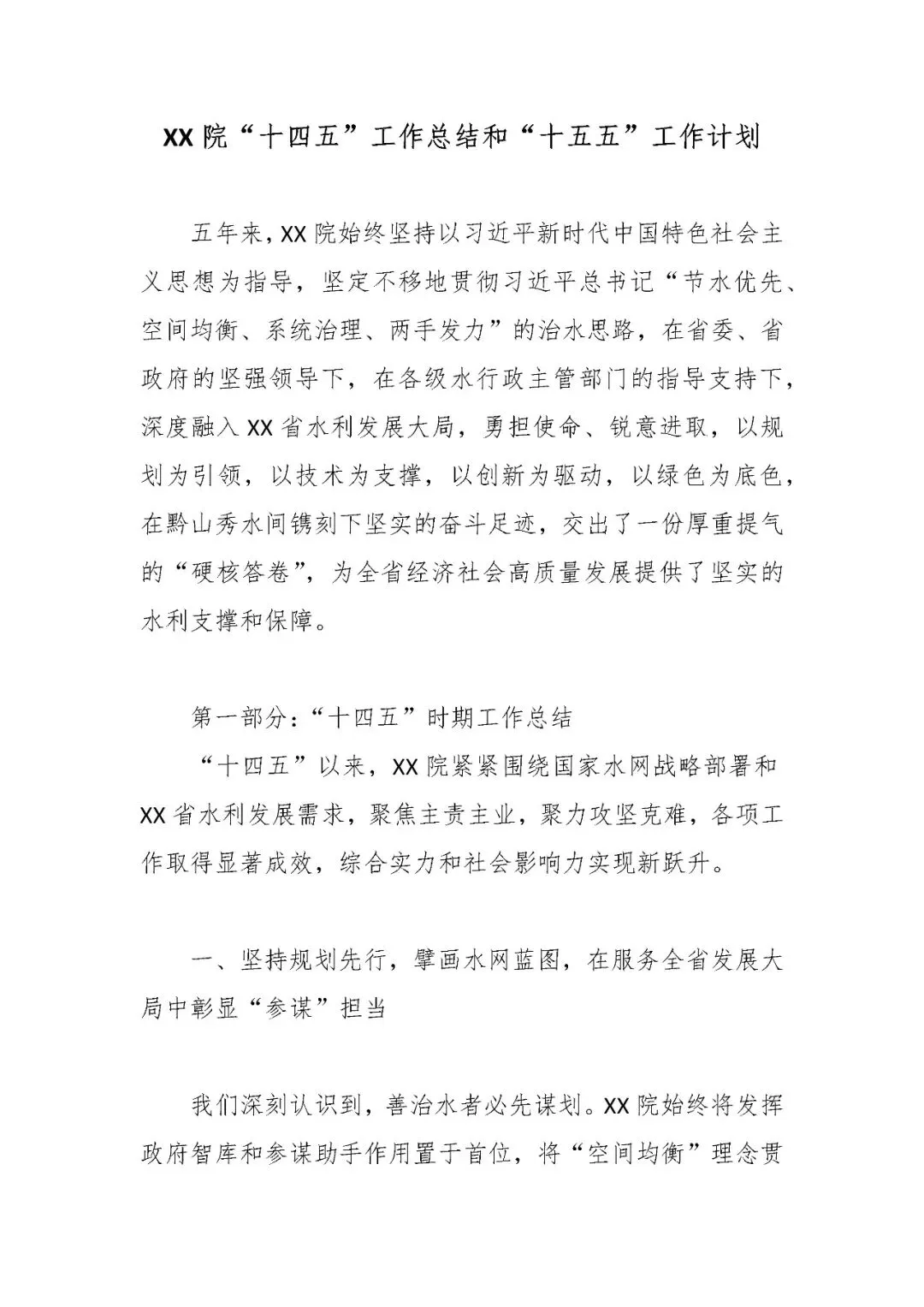>XX院“十四五”工作总结和“十五五”工作计划