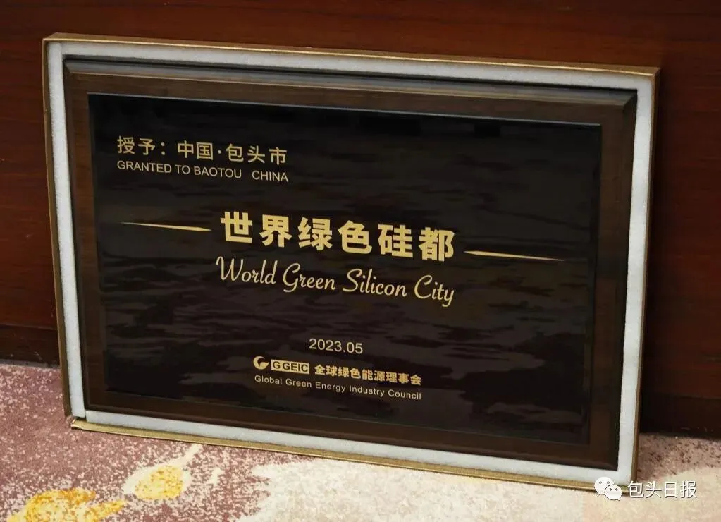 2023年5月23日,第十六届(2023)国际太阳能光伏与智慧能源(上海)大会召开。大会开幕式上,全球绿色能源理事会授予包头市“世界绿色硅都”称号。