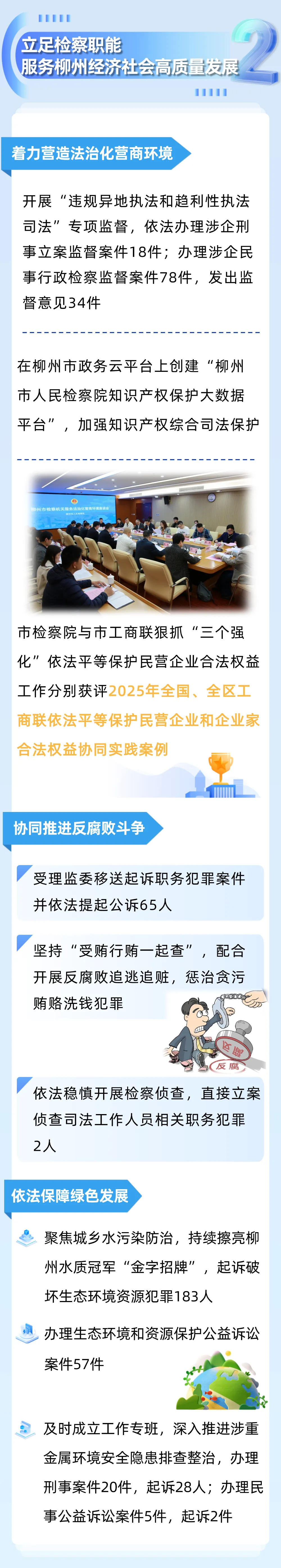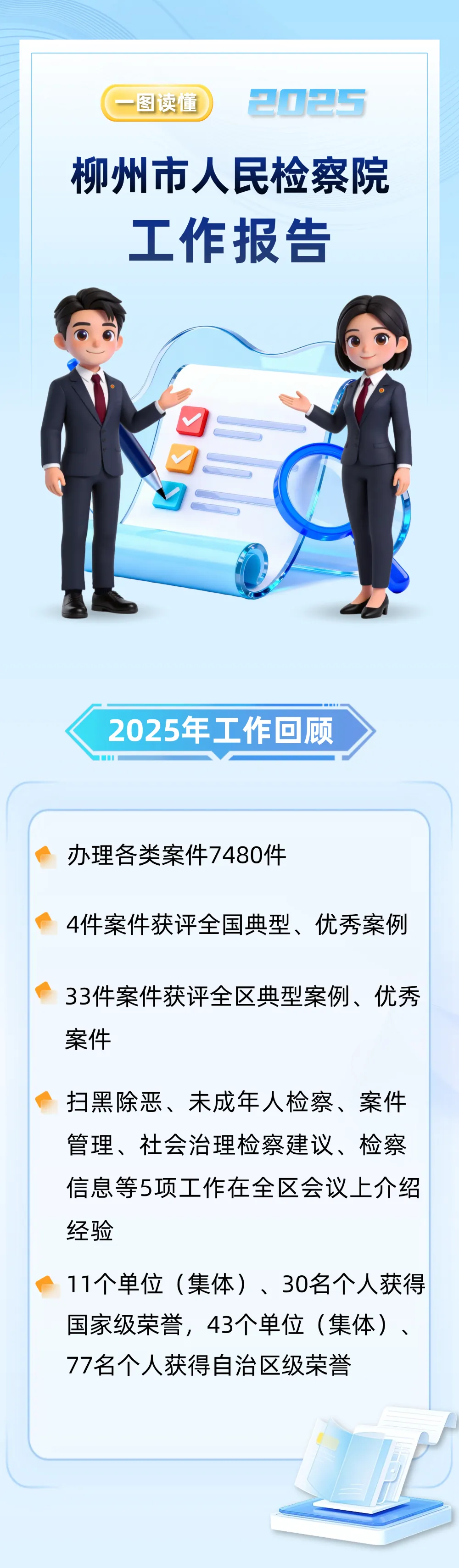2025年,在市委和上级检察院坚强领导下,在市人大及其常委会有力监督和市政府、政协、社会各界大力支持下,柳州市人民检察院坚持以习近平新时代中国特色社会主义思想为指导,全面贯彻党的二十大和二十届历次全会精神,深入贯彻习近平法治思想和习近平总书记关于广西工作论述的重要要求,坚持实干为要、创新为魂,用业绩说话、让人民评价,全面忠实履行法律监督职责,高质效办好每一个案件,做实为大局服务、为人民司法、为法治担当,各项检察工作取得新成效。