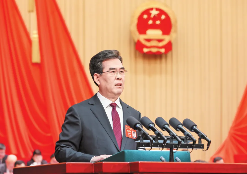 2025年1月19日上午,贵州省第十四届人民代表大会第三次会议在贵阳隆重开幕。图为李炳军作政府工作报告。贵州日报天眼新闻记者 李森 摄