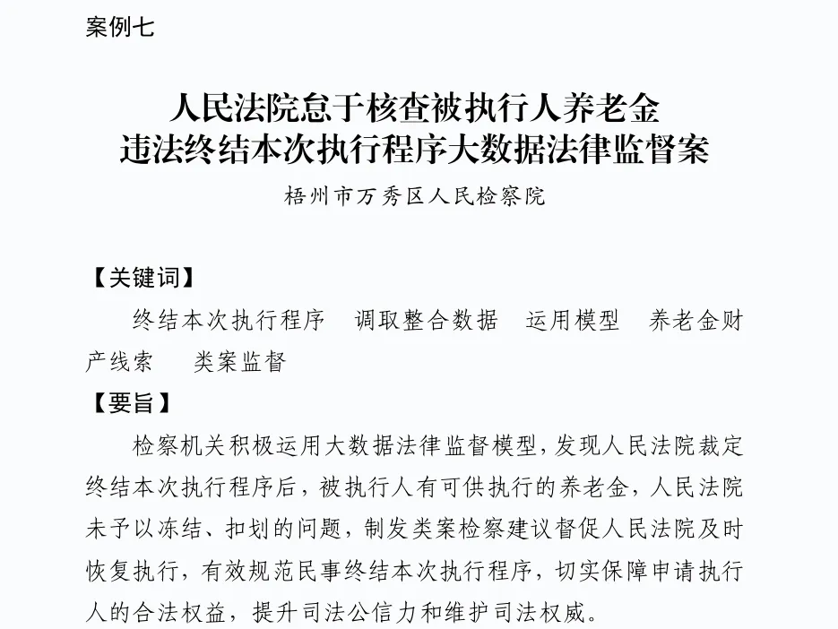 开展违规终本执行监督专项活动,督促法院冻结划扣10名被执行人可供执行财产,该案获评全区检察机关典型案例。