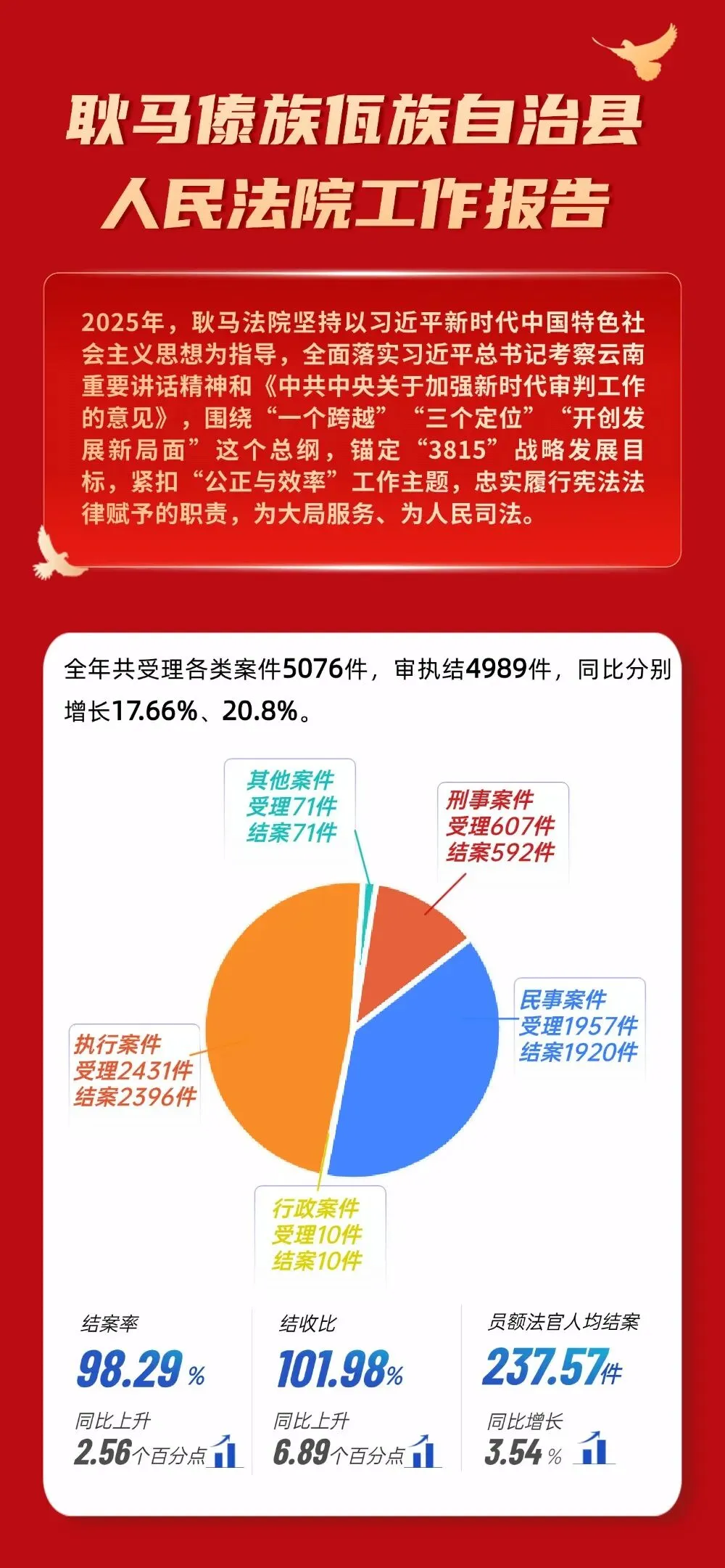 2026年2月26日,在耿马傣族佤族自治县第十六届人民代表大会第五次会议上,全体代表、列席人员听取了耿马傣族佤族自治县人民法院工作报告。
