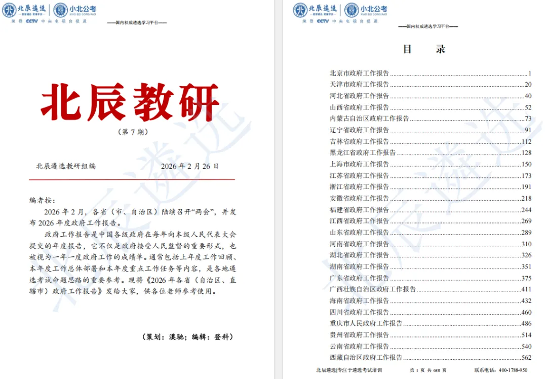 备考遴选还在四处找素材?我们整理了2026年全国各地政府工作报告汇编(31篇)核心汇编,紧扣政策热点、梳理施政脉络,助你精准把握备考风向!这份独家汇总资料,是你搭建答题框架、提升理论深度的“宝藏库”,高效利用,赢在起点!