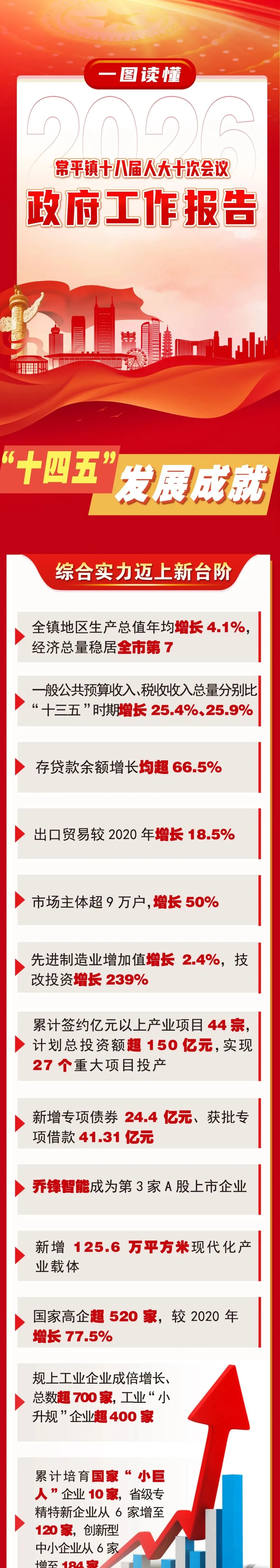 2月27日,常平镇第十八届人民代表大会第十次会议召开。镇党委副书记、镇长李中文向大会作政府工作报告。常平“十四五”发展及2025年主要工作成效如何?2026年又有怎样的发展目标?带你一图读懂报告。