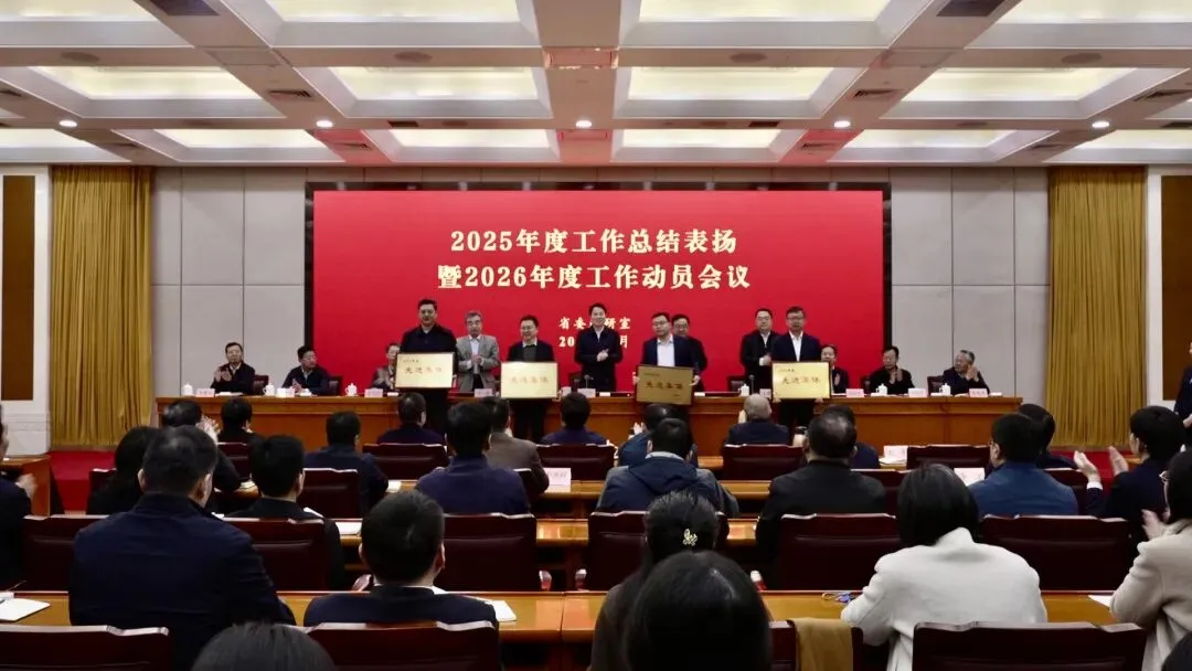 会议通报表扬了2025年度先进集体、先进党支部、先进个人以及优秀调研成果,表扬了爱岗敬业干部、担当作为青年标兵和“读书之星”,领导班子成员向受到表扬的集体和个人分别颁奖。