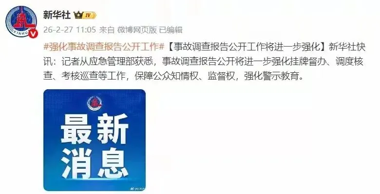2月27日,应急管理部新闻发布会有关事故调查报告公开强化工作的核心内容如下: