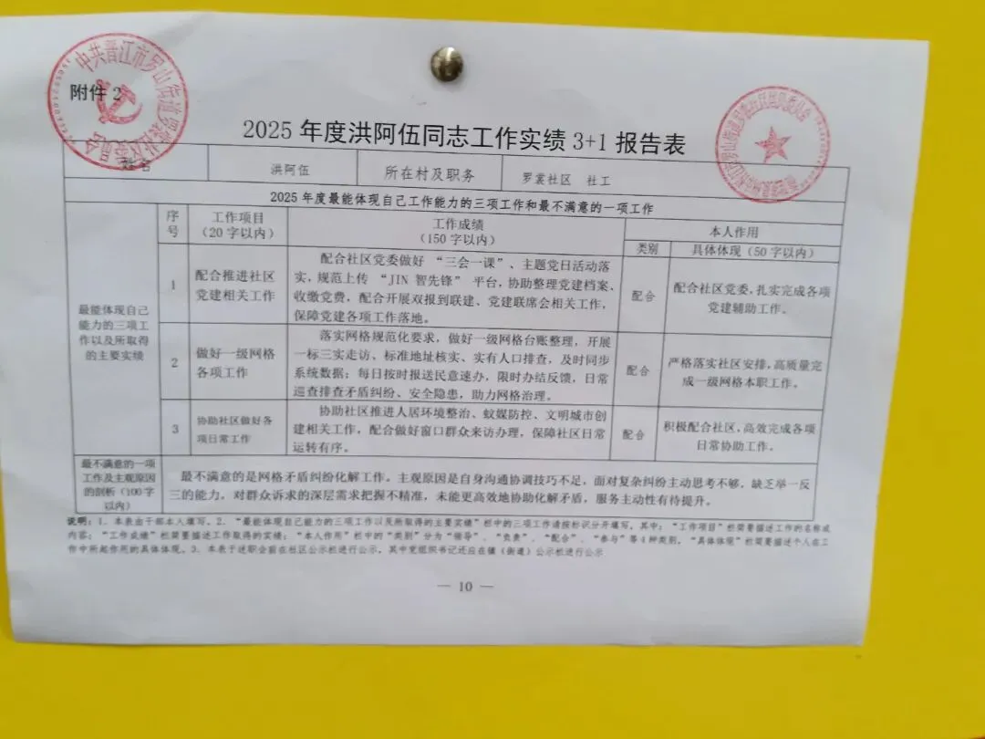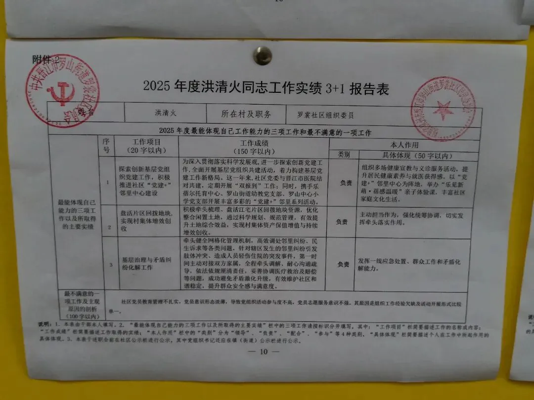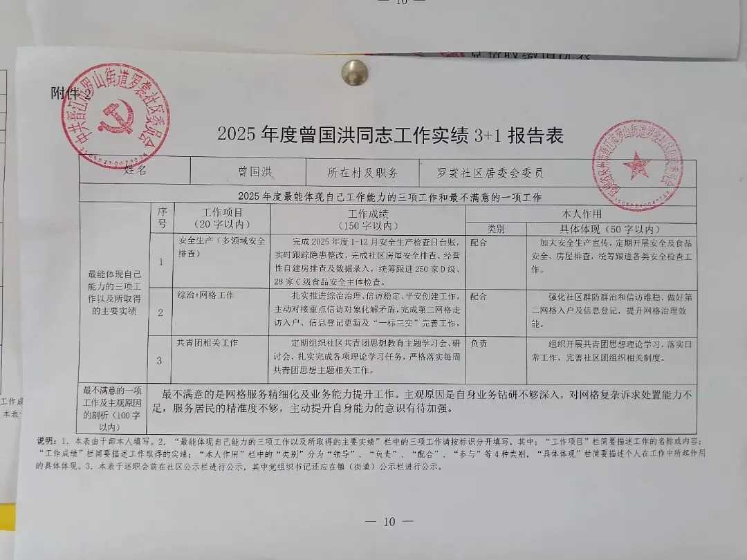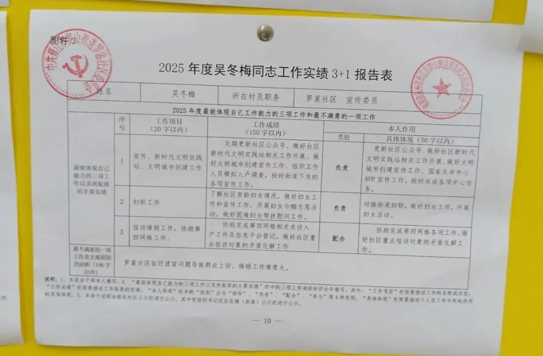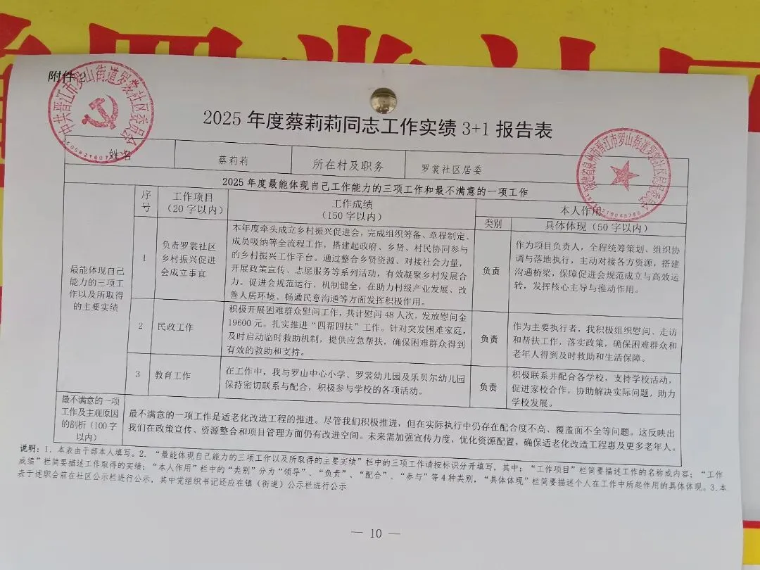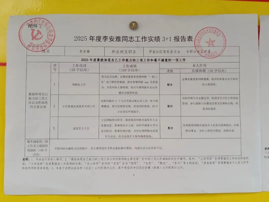 >2025年度罗裳社区“两委”班子和工作人员工作实绩“3+1”报告表公示