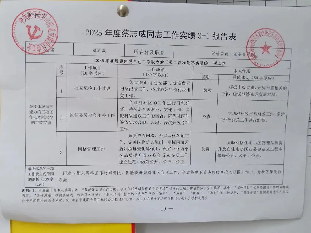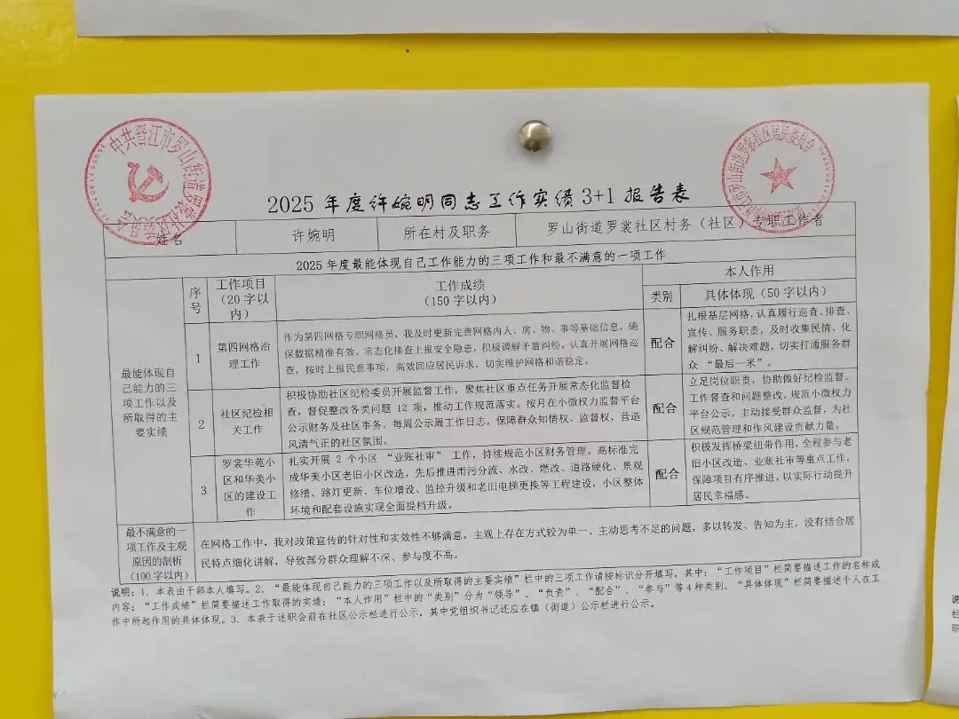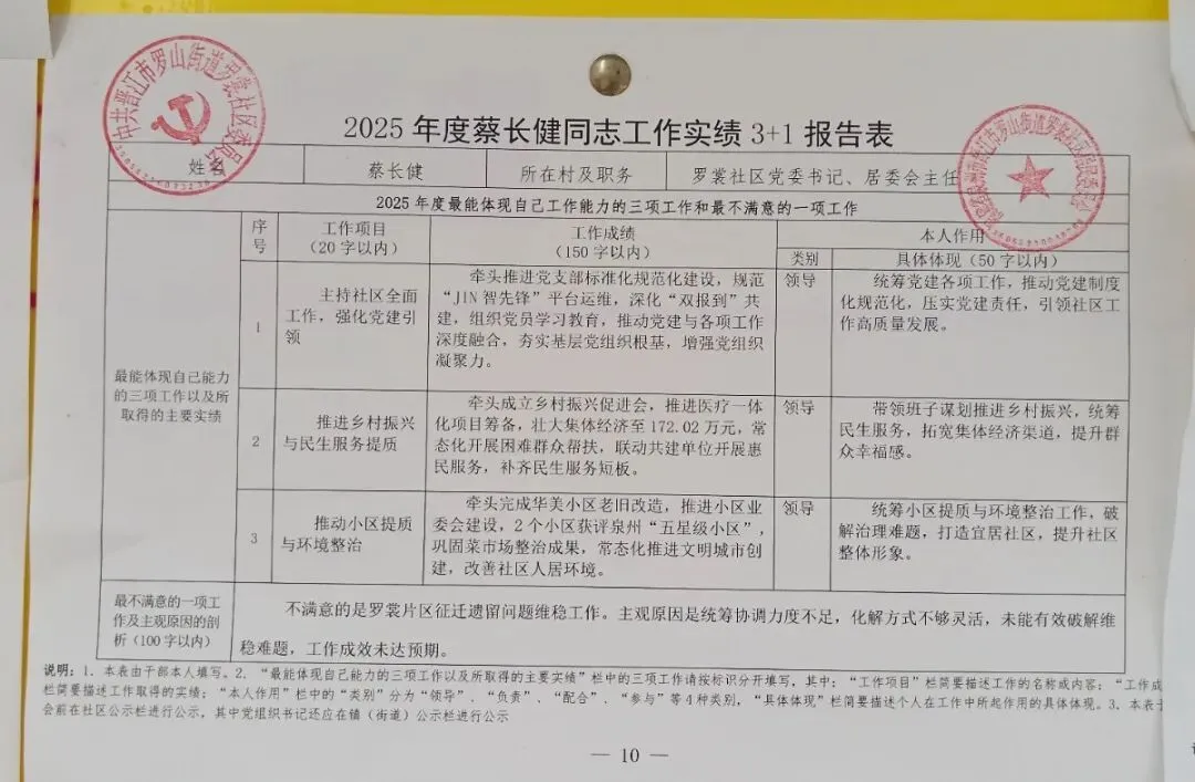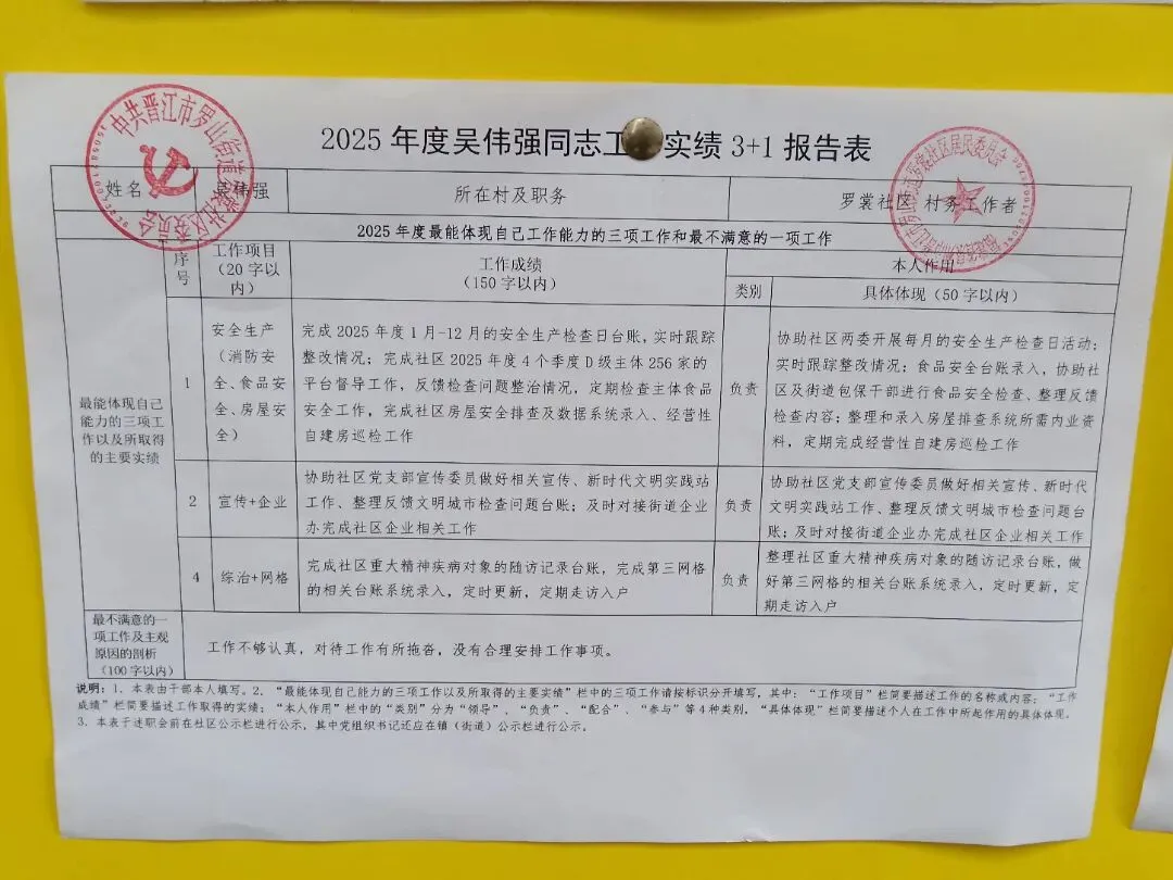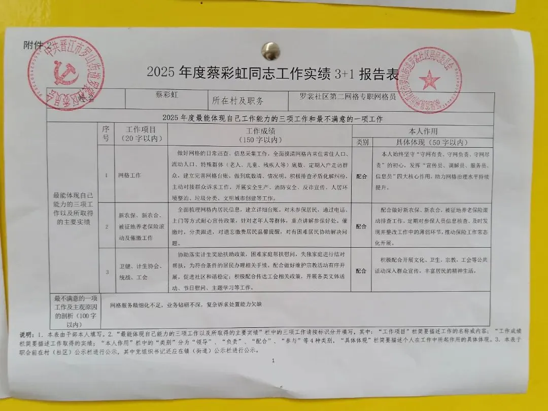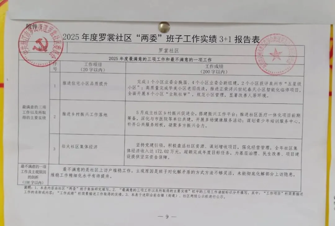 >2025年度罗裳社区“两委”班子和工作人员工作实绩“3+1”报告表公示
