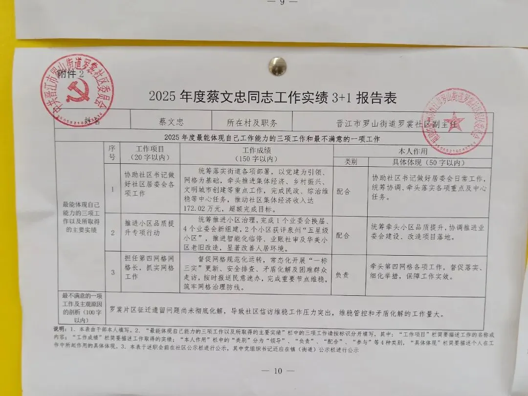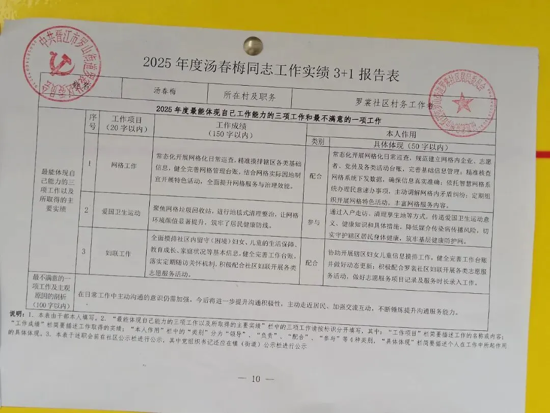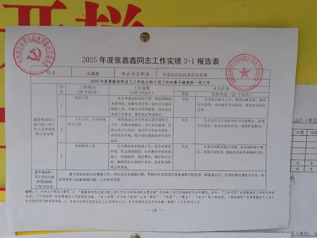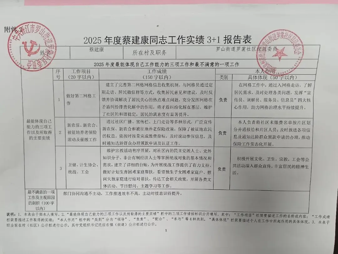 2025年度罗裳社区“两委”班子和工作人员工作实绩“3+1”报告表公示