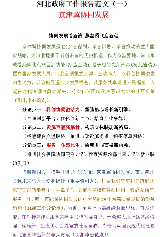 河北政府工作报告中的重点工作提炼出两篇范文