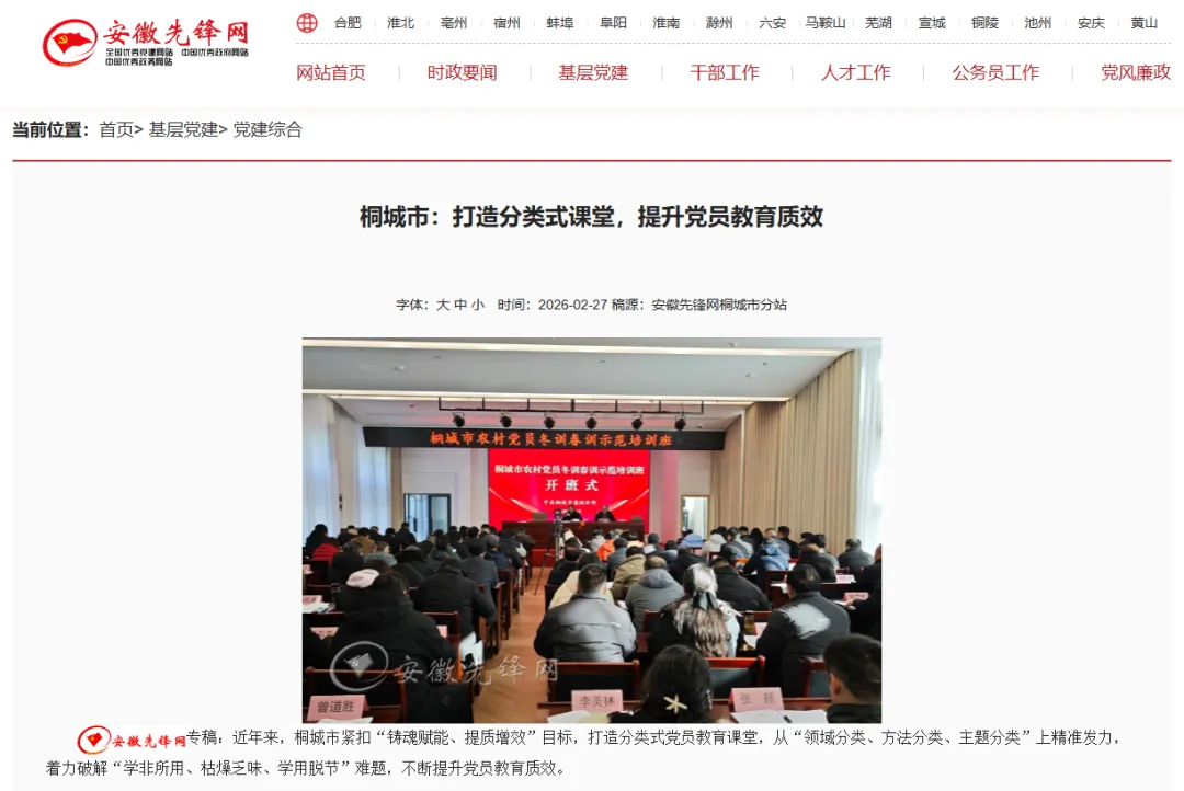 近年来,桐城市紧扣“铸魂赋能、提质增效”目标,打造分类式党员教育课堂,从“领域分类、方法分类、主题分类”上精准发力,着力破解“学非所用、枯燥乏味、学用脱节”难题,不断提升党员教育质效。
