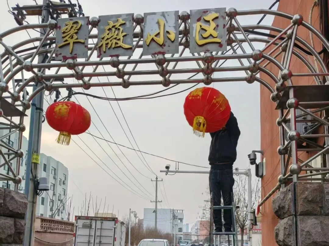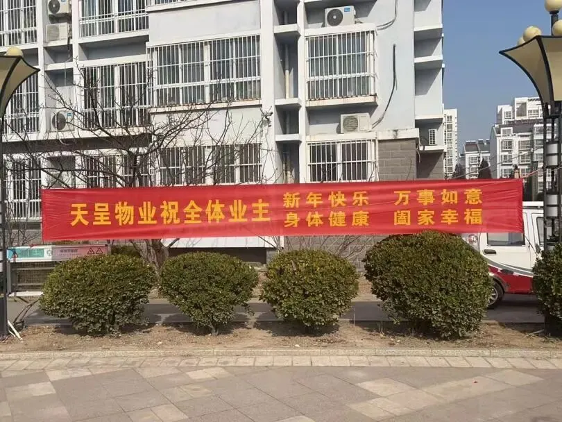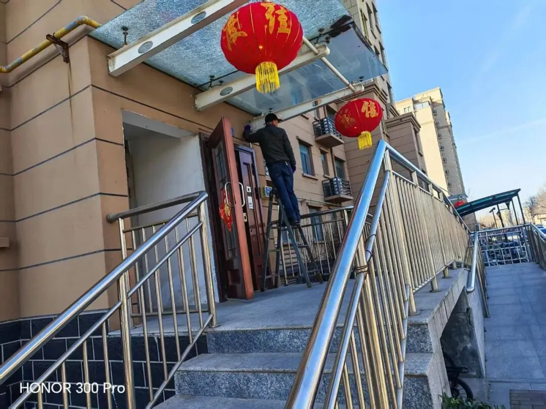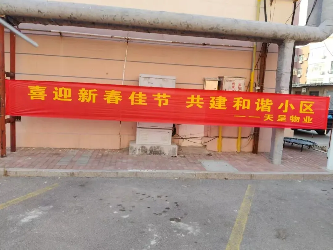 新春佳节将至,天呈物业提前装扮园区!大红的灯笼高高挂,喜庆的福字门上贴,吉祥的横幅迎风飘,一步一景皆年味,让业主沉浸在浓浓的节日氛围里。