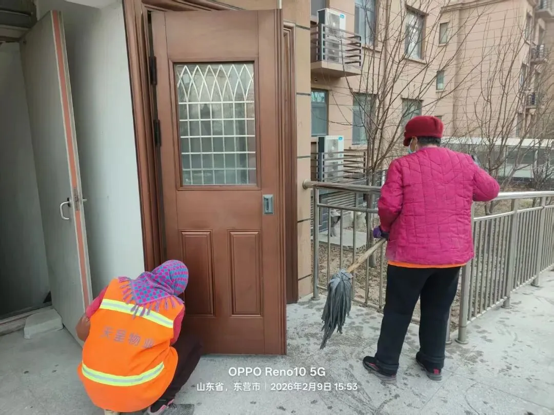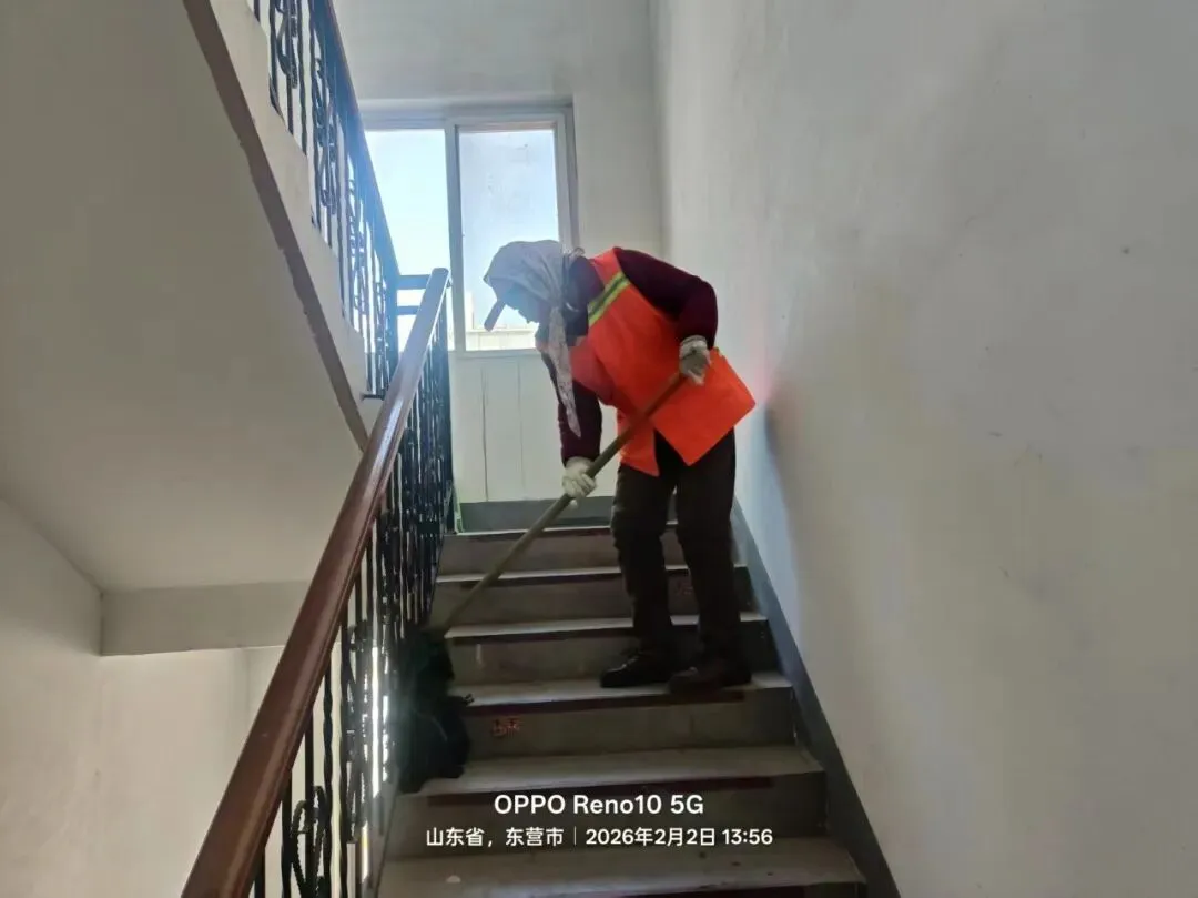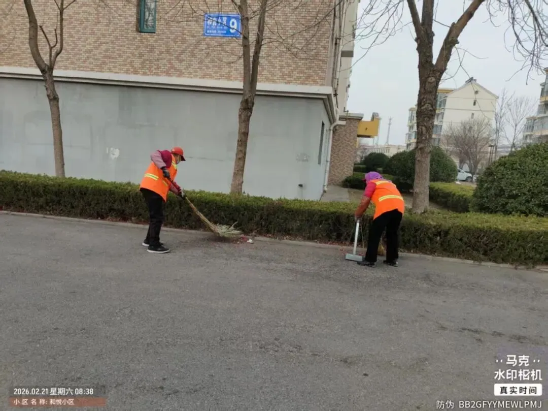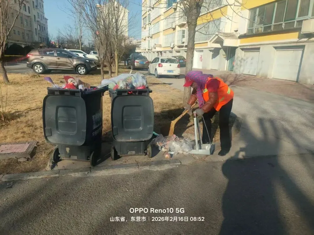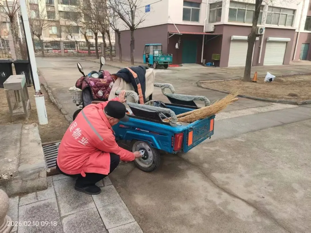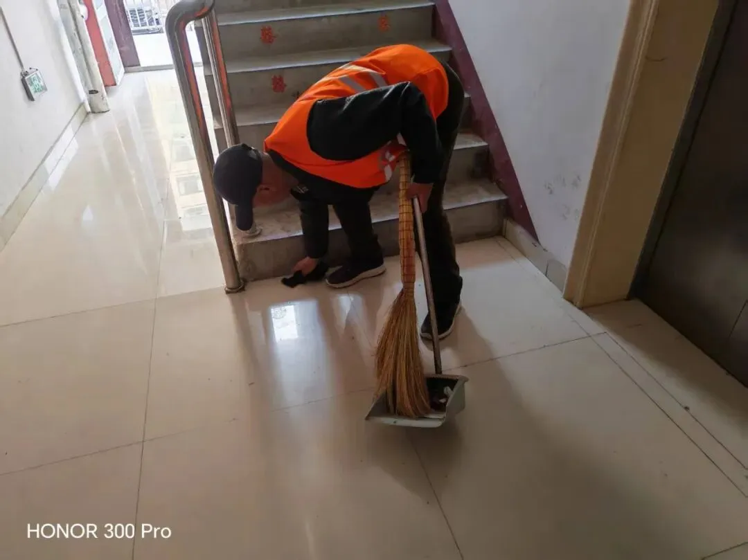 春节前后是保洁们最忙碌的时候。节前园区卫生精细打扫,节假日期间她们坚守岗位照常工作,严格落实日常清扫、垃圾清运等各项保洁任务,全力保障小区环境干净整洁,用坚守营造温馨祥和的节日氛围。