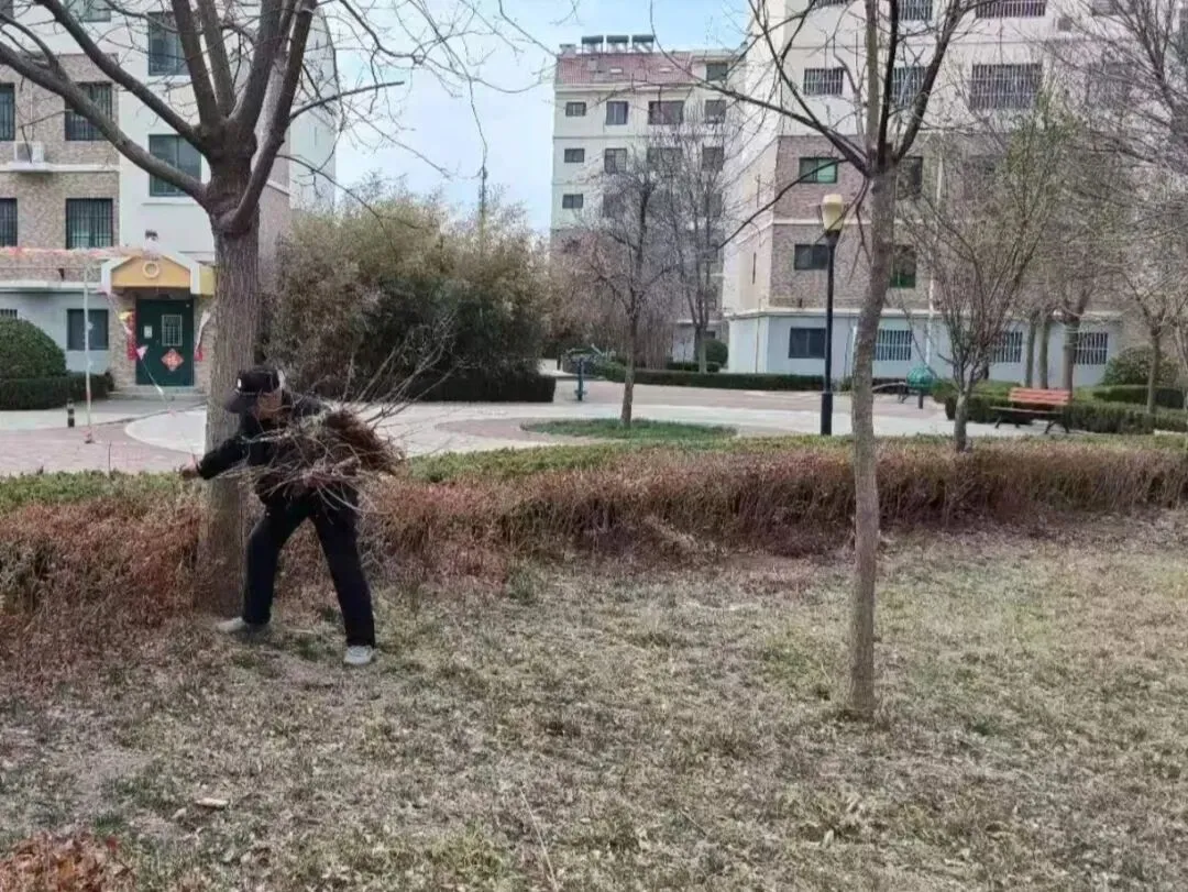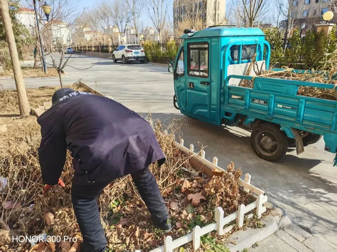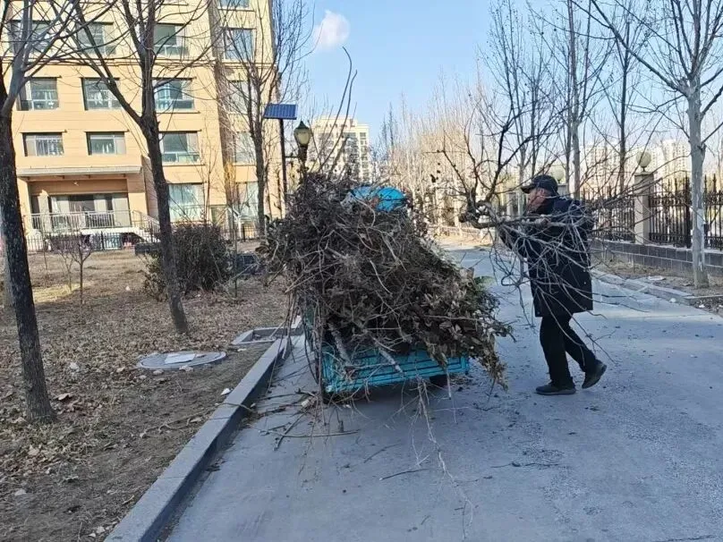 精细清理、焕新家园,继续全面开展绿化带枯枝败叶清理及环境整理。针对落叶堆积、干枯枝条及堆积的杂物,集中进行清理清运,消除火灾安全隐患,为春节小区营造干净、整洁、安全的居住环境。