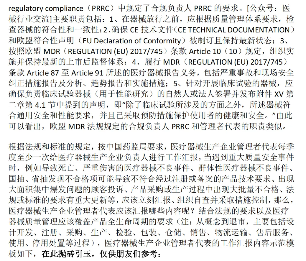 医疗器械生产企业管理者代表是一个非常重要的岗位,法规和标准对其任职条件、工作职责等均做了详细的规定,而且明确了管理者代表是企业副总经理或企业其他高级管理人员,经过梳理,与之直接有关的规定至少包括: