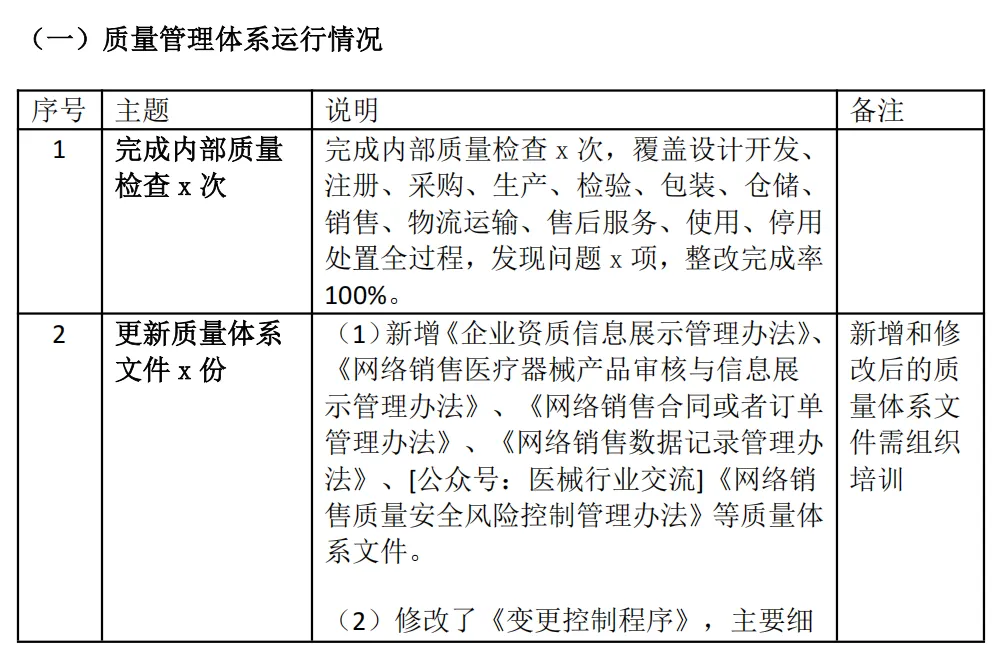 7 | 组织全员培训、专题培训并考核 | (1)新增和修改后的质量体系文件组织培训。 (2)开展《医疗器械网络销售监督管理办法》(2017 年12月20日国家食品药品监督管理总局令第38号公布自2018 年3月1日起施行)、《国家药监局关于发布医疗器械网络销售质量管理规范的公告》(2025年第46号,发布时间:2025-04-28)、《浙江省药品监督管理局关于印发<浙江省医疗器械网络销售行为合规指引(第一版)>的通知》(发布时间:2025-07-09)全员培训并考核。 (3)组织对xx产品的安装、维修、保养的售后服务专题技术培训。 (4)组织对《中华人民共和国计量法》(根据2018年10月26日第十三届全国人民代表大会常务委员会第六次会议《关于修改〈中华人民共和国野生动物保护法〉等十五部法律的决定》第五次修正)、《中华人民共和国计量法实施细则》(根据2022年3月29日《国务院关于修改和废止部分行政法规的决定》第四次修订),公布日期:2022-03-29)计量管理要求专题培训。 | 人力资源部、行政部负责 |