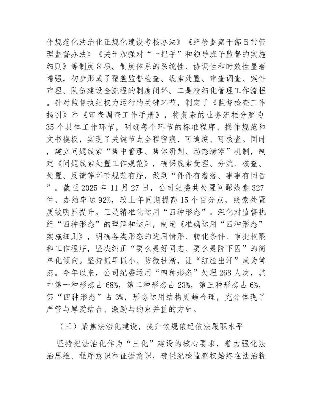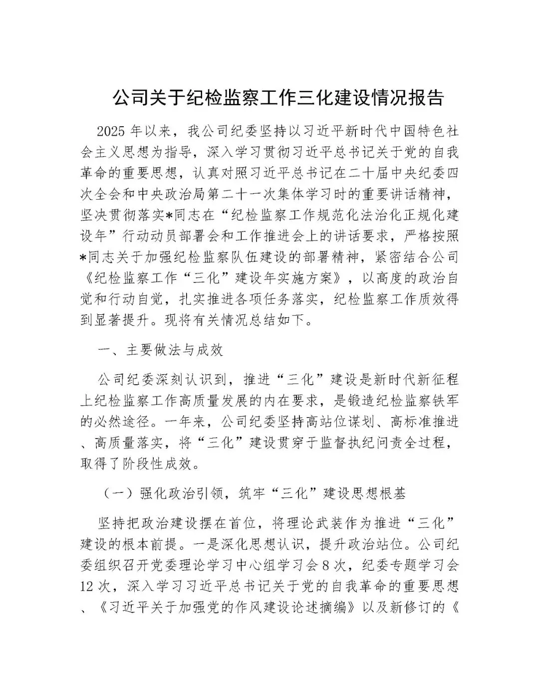 >2025年关于纪检监察工作三化建设情况报告
