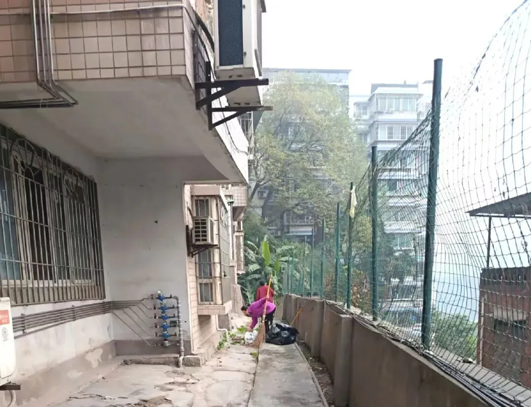 环境清洁与绿化养护:对整个小区进行了全面的清洁,对住户门上的小广告进行了清理一次,对消防门进行了全面的清洁。并针对小区公共区域(如单元门厅、电梯轿厢、休闲广场),调整清洁频次,确保每日至少 2 次深度清扫,;对绿化带内杂草进行集中清除,补种枯萎绿植,并定期修剪乔木、灌木,保障园区绿意整洁。