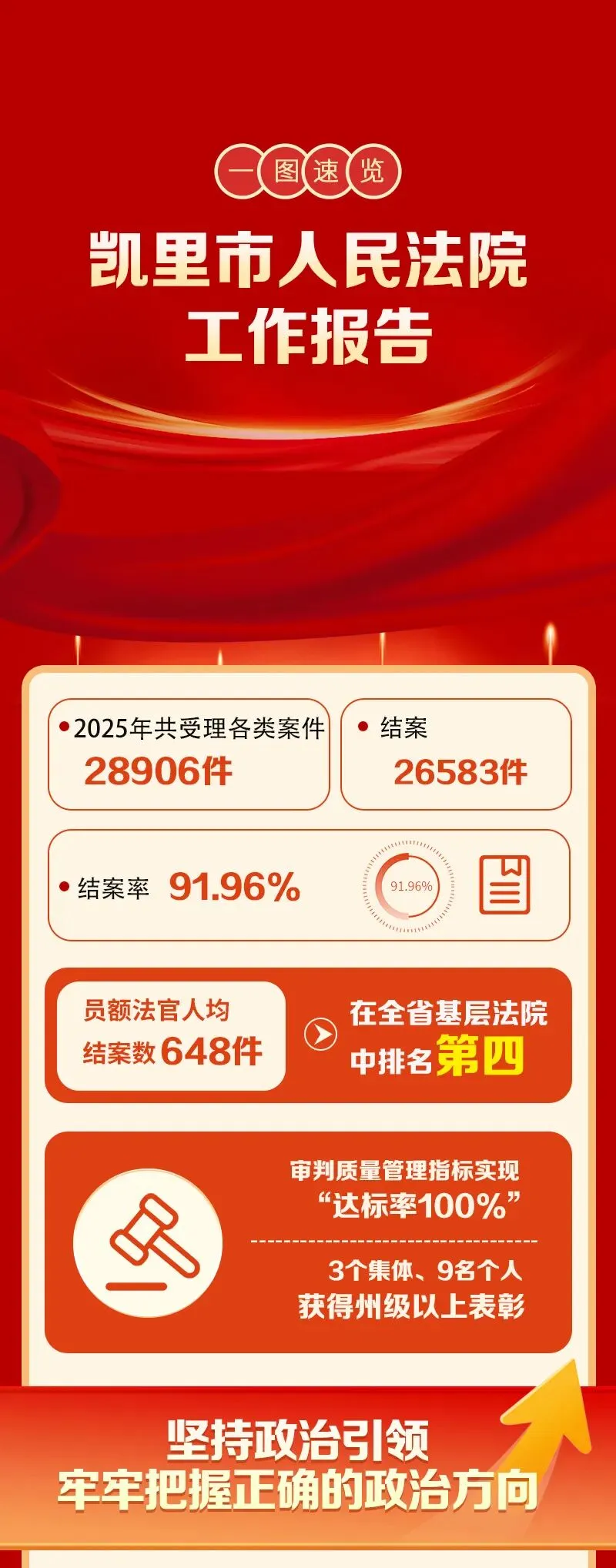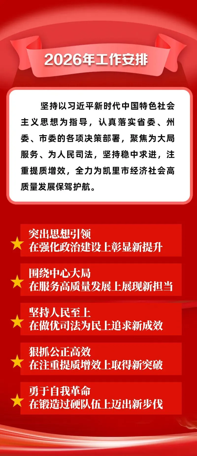2026年2月27日,凯里市人民法院党组书记、院长吴建华代表凯里市人民法院向凯里市第十届人民代表大会第五次会议报告法院工作。
