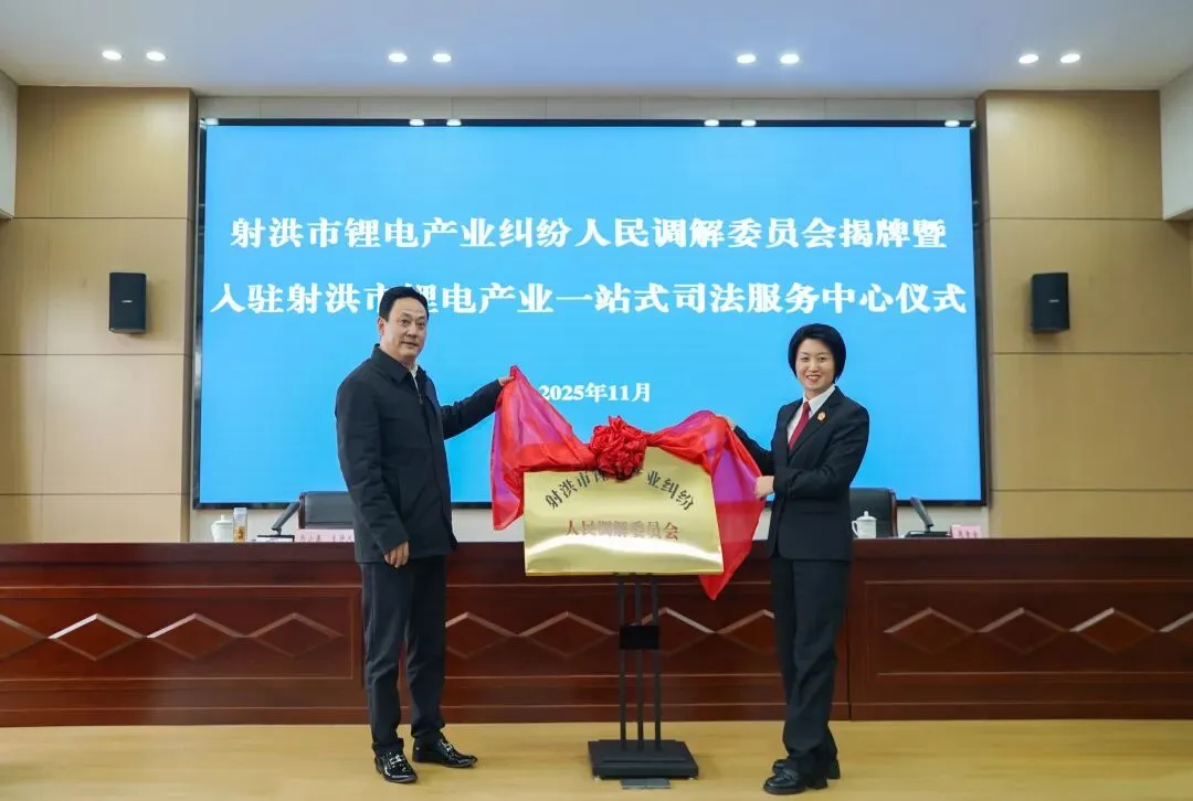 为护航千亿锂电产业集群建设,射洪法院精准发力,推动成立锂电产业纠纷人民调解委员会,入驻锂电产业纠纷一站式司法服务中心。2025年,受理涉锂电案件79件,审结74件,调撤率达66.7%,涉案金额达1.5亿余元,以法治的智慧和温度,实现“审理提速、服务提质、发展提效”。从“多元调解”到“专业调委会”的体系化建设,“锂电产业一站式司法服务中心”“锂电产业纠纷人民调解委员会”正在用扎实的实践,为锂电产业行稳致远铺设一条坚实的“法治高速路”。
