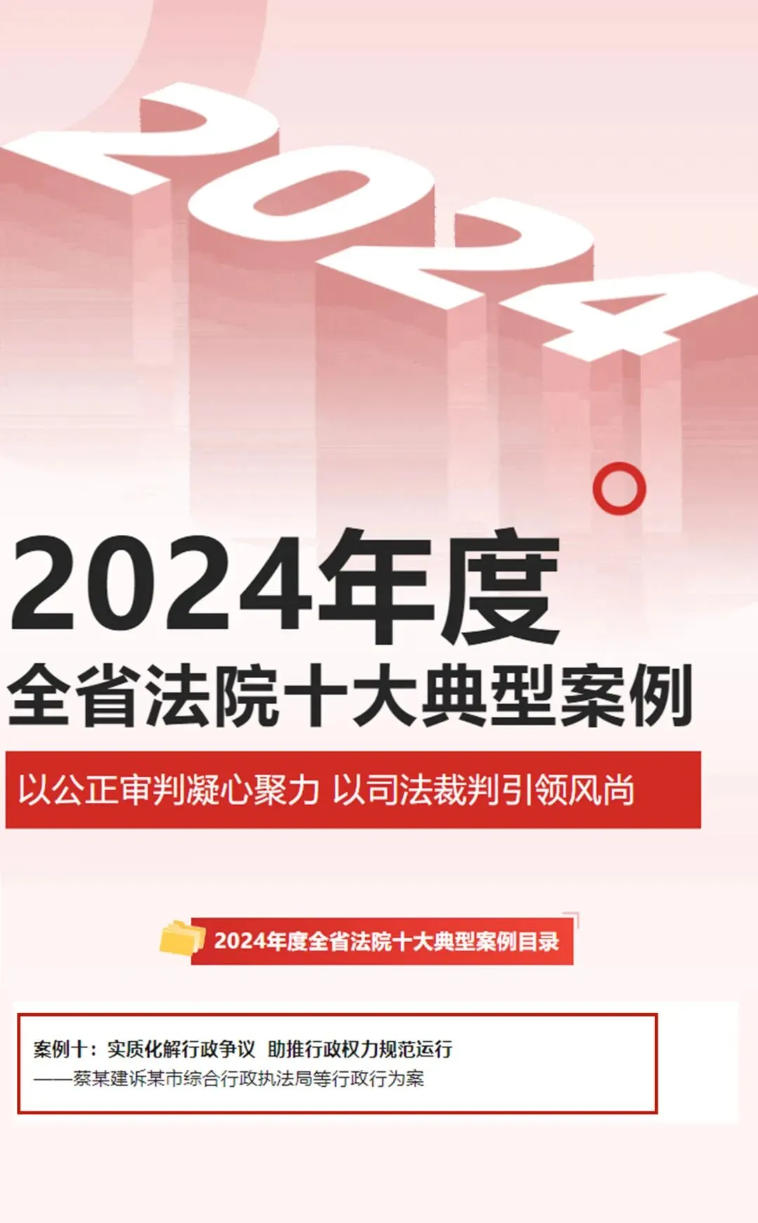 “蔡某建诉某市综合行政执法局等行政行为案入选全省法院十大典型案例”