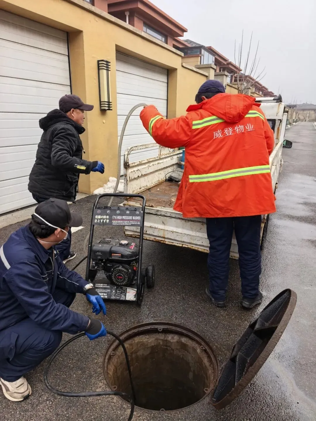 为持续营造安全、舒适、整洁的居住家园,切实保障小区居民日常生活秩序,近日,威登物业开展下水道管网专项维修疏通行动,全力解决管道堵塞难题。工作人员化身“管道医生”,借助高压清洗机等专业设备,对小区内堵塞的下水道进行强力冲洗,精准清除管道内淤积的淤泥、杂物等堵塞物,快速恢复管道排水畅通。同时,对小区内所有井盖、管道接口等关键部位进行逐一细致检查、精准维护,及时排查并排除各类潜在安全隐患,用细致服务守护居民日常生活便利。