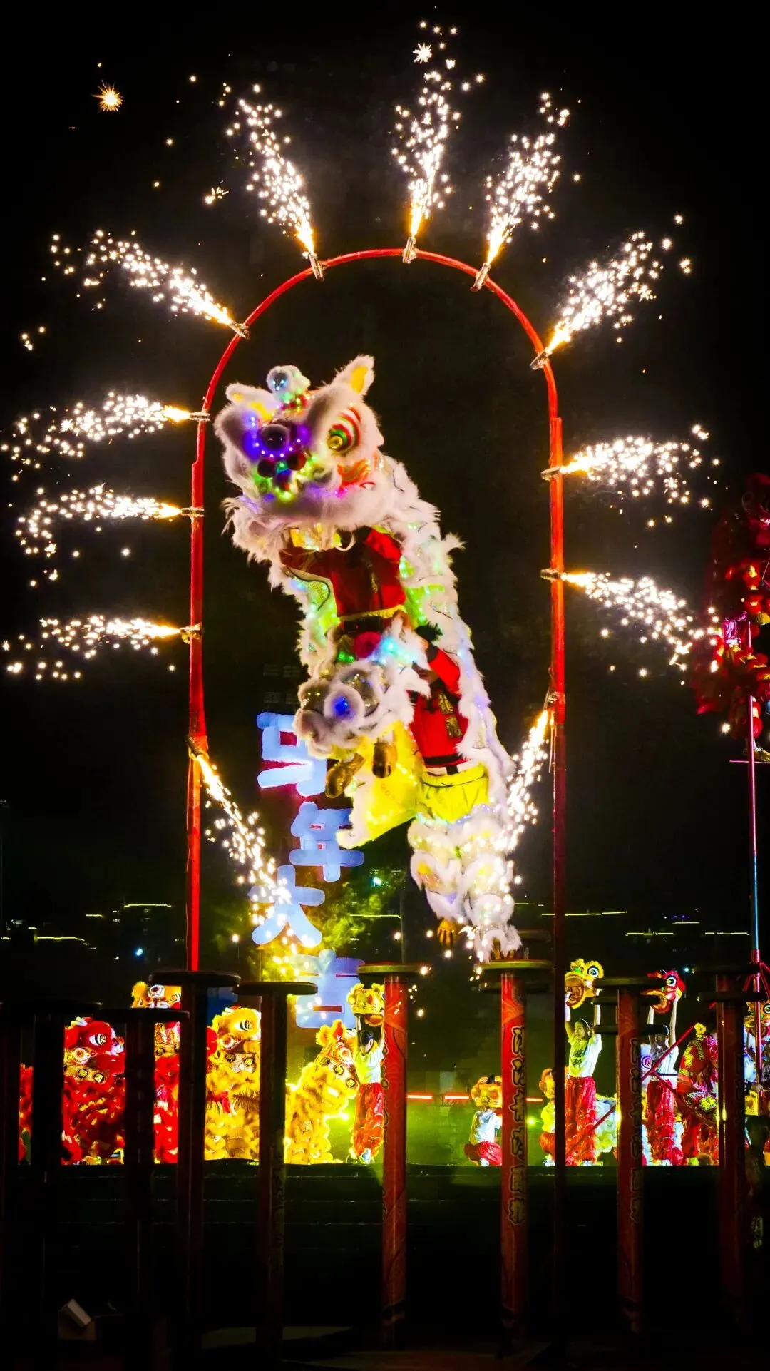 惊险刺激的醒狮表演。