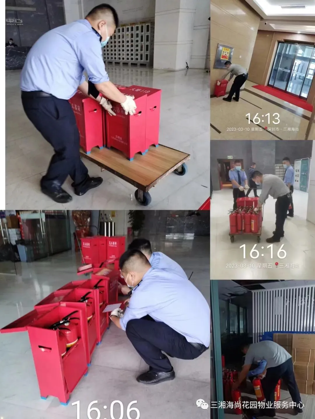灭火器是出现火灾时最及时、最有效、最经济的扑救工具。平时定期维护,定期检查,发现有问题的,配件老化的情况要及时维修、更换、重新装药等,已购买500支灭火器及一批配件,分别配送至各个点位,并且将老化的配件全部更换,保证灭火器时刻处在完好状态。
