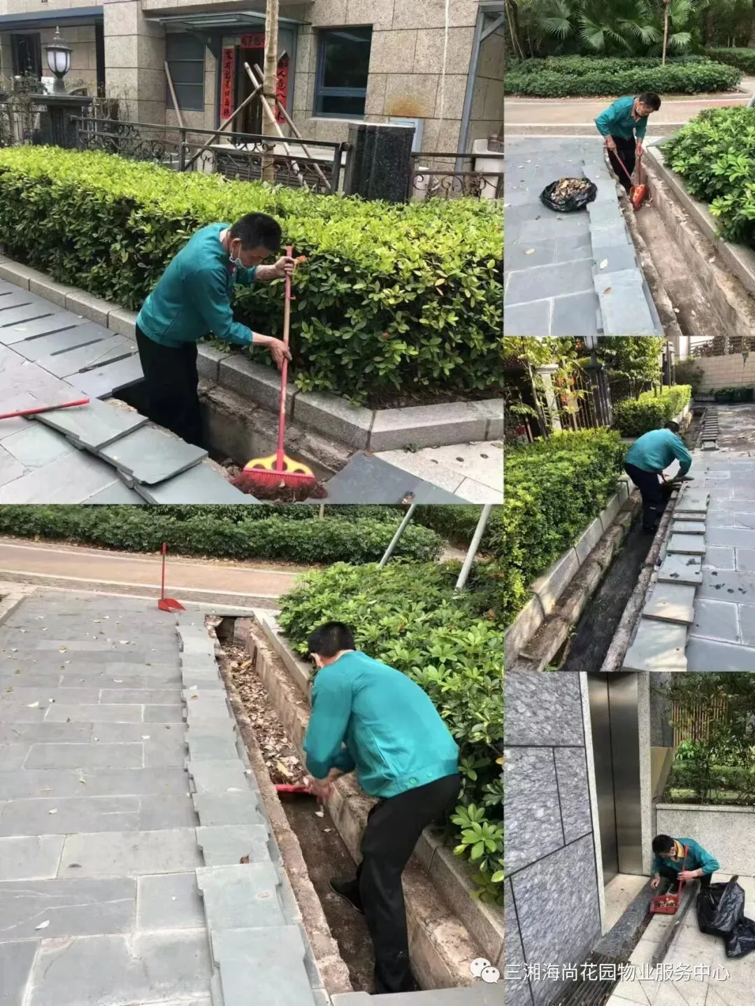 定期清理排水口,确保畅通。台风暴雨前,所有排水排污口的树叶、淤泥等垃圾清理,防止暴雨来临时因流水不畅而发生阻塞浸水。