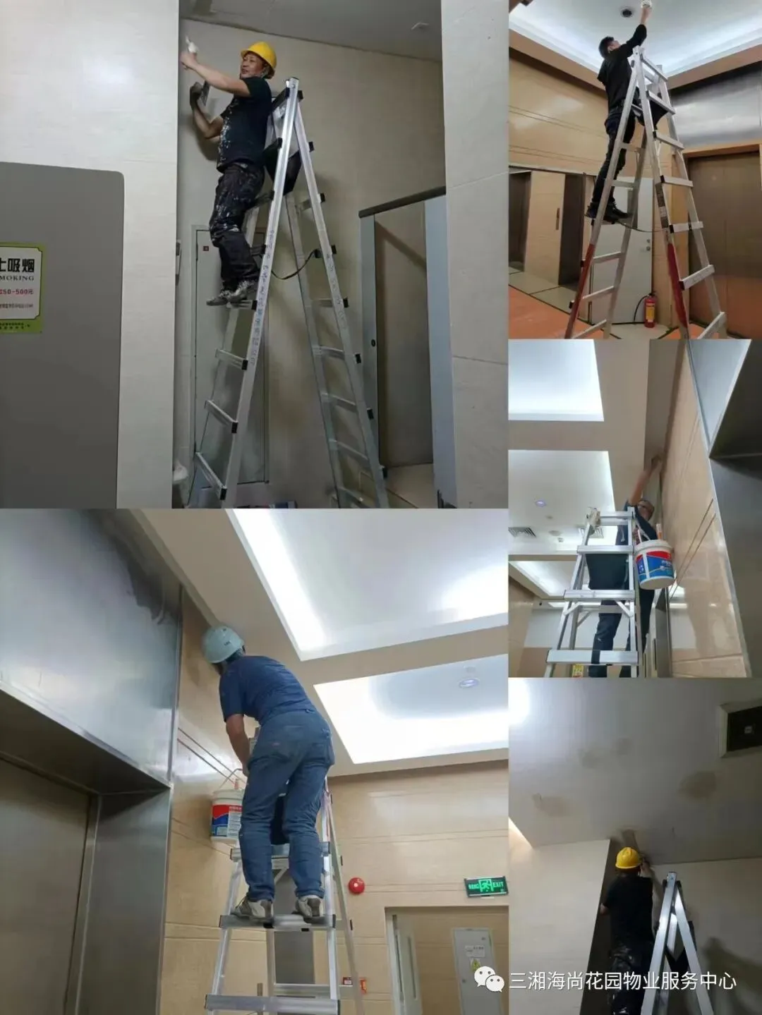 写字楼公共通道及公共卫生间的天花,因天气潮湿等各方面的原因影响,导致天花发黄、脱皮、掉灰情况严重,为了给用户一个良好的办公环境,物业服务中心对公共通道及卫生间的天花及灯光进行全部更新改造。