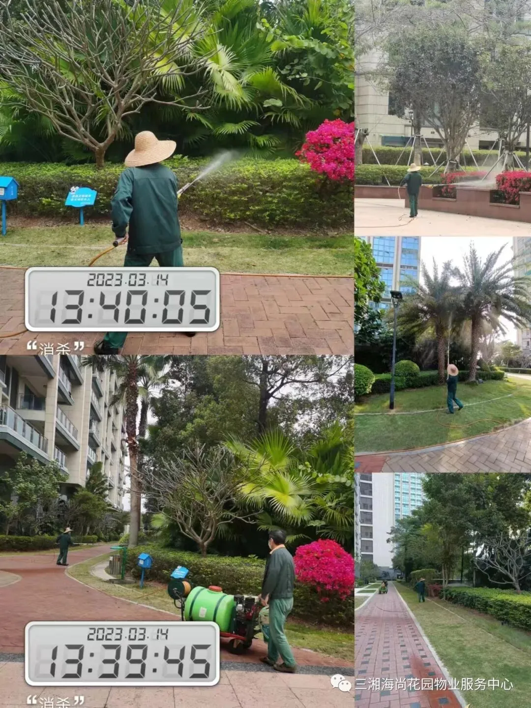 春天,气温回暖,也到了各种蚊虫滋生的季节,物业服务中心加大消杀力度,绿化消杀、下水道、停车场等每个位置全面消杀,并且定期清理排水排污口的积水,减少蚊虫滋生的温床。在此,提醒各位业主: