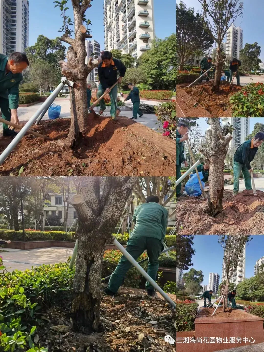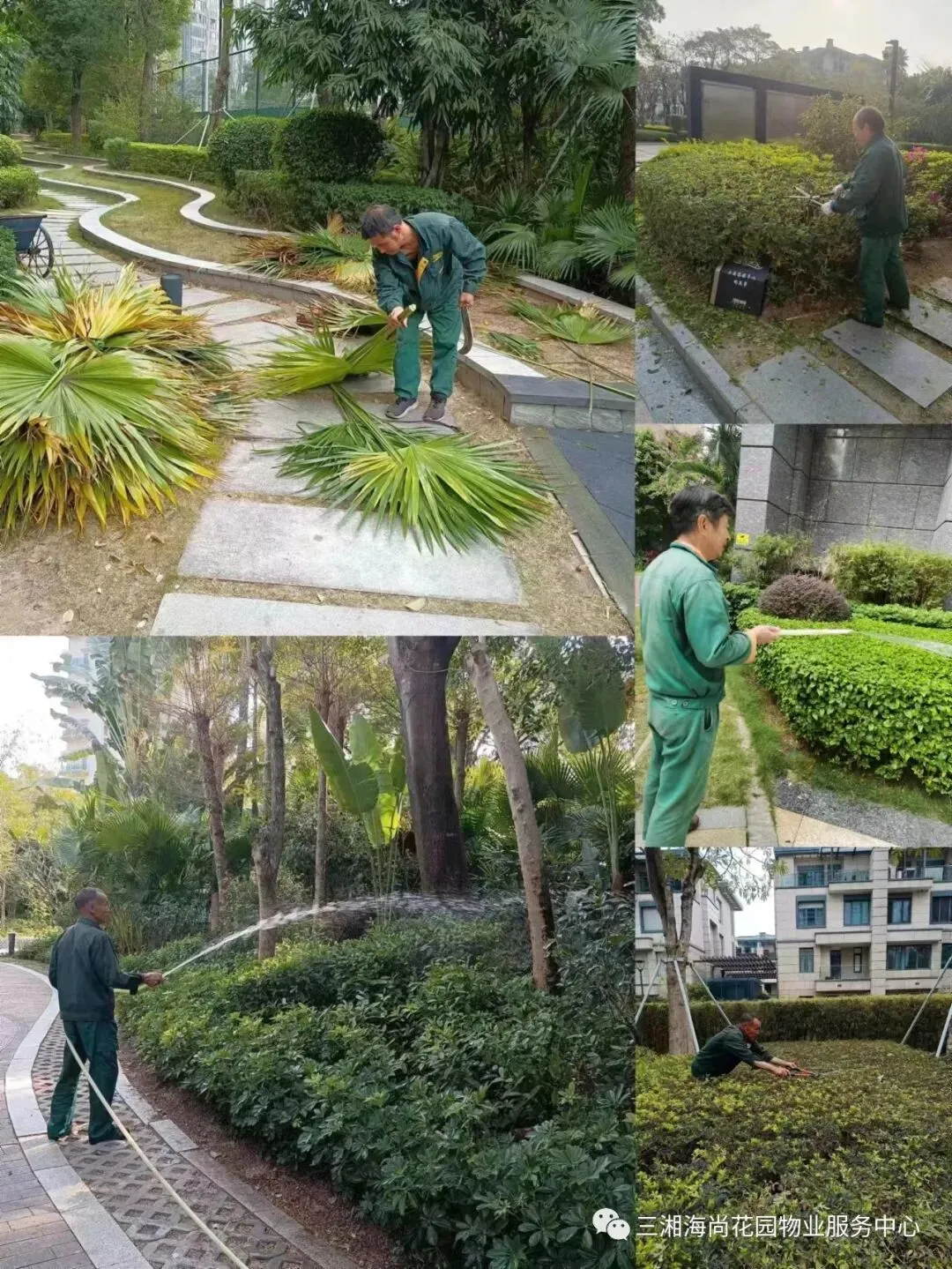 绿化工人每天对自己的工作区域内的树木进行浇水、施肥、修剪、补苗……