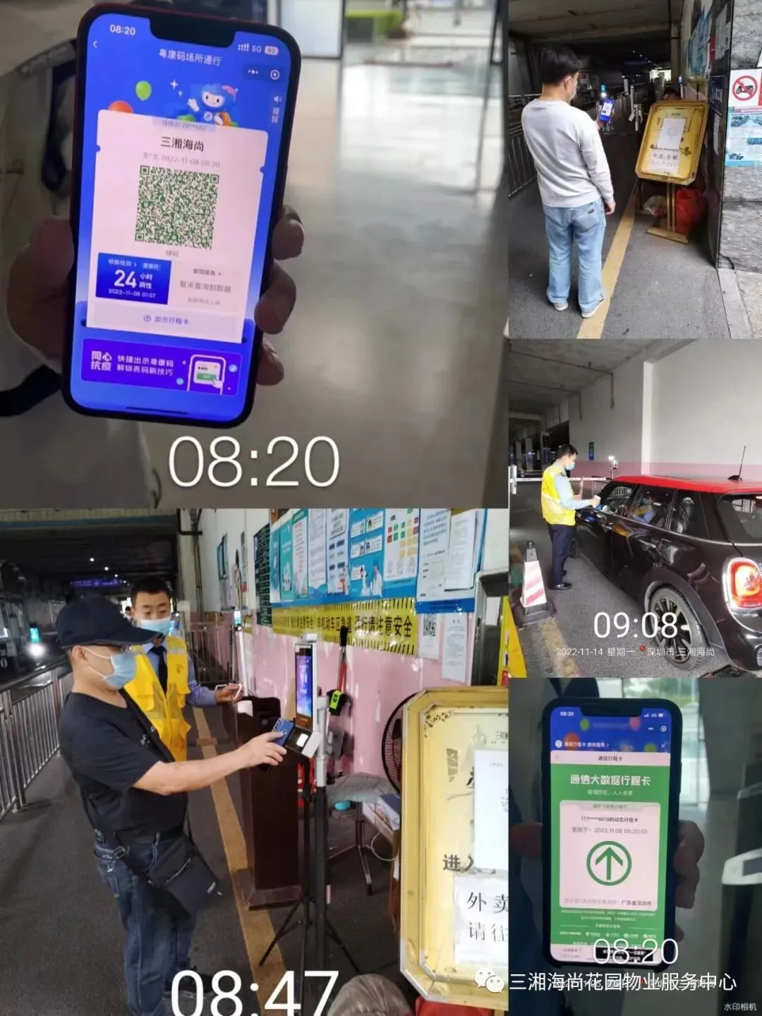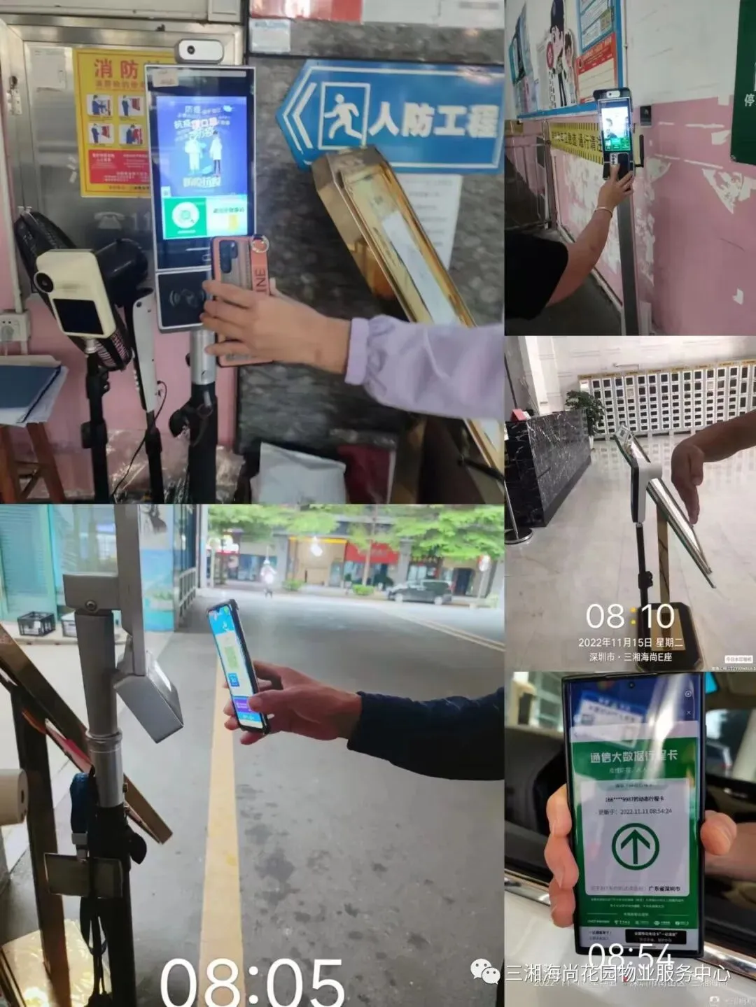 4、日常工作开展。进入小区的正常查验工作:扫码、测温、查行程。