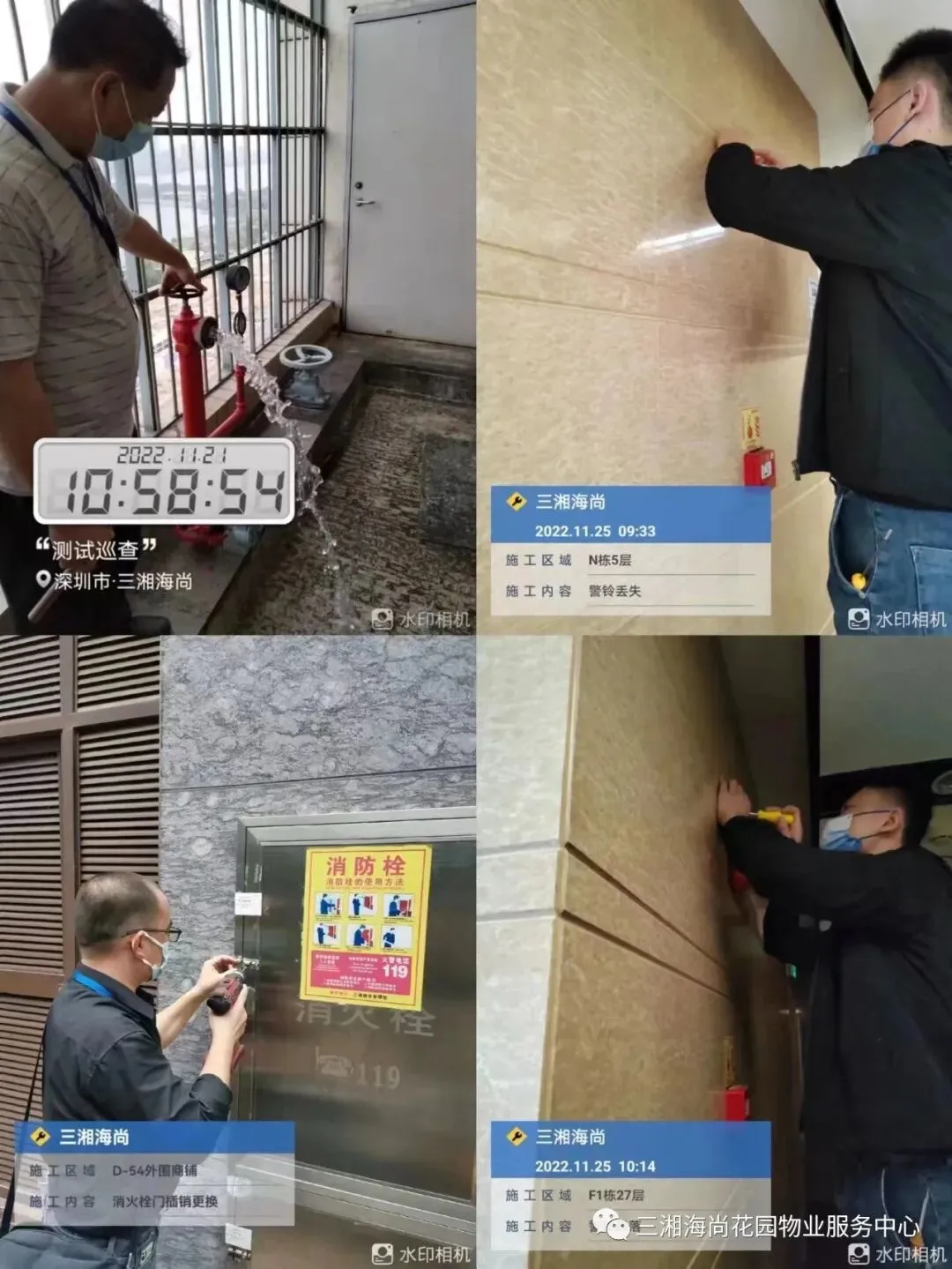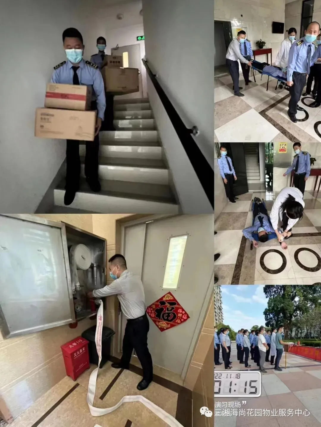 为了加强小区的消防管理,贯彻落实消防安全工作,以“预防为主,防消结合”的指导方针,提高物业公司全体人员对消防突发事件的应急处理能力,增强业户的消防自救意识,保障小区消防设备设施的功能完好,物业公司于2022年11月18日下午16:00—17:00在小区平台西大门广场(毛主席铜像前面)开展消防演习。