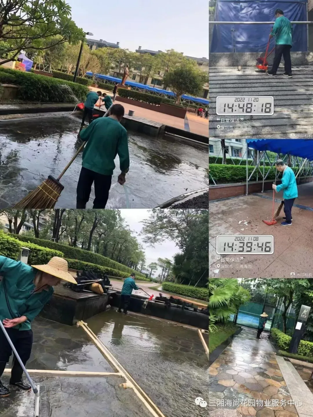 环境卫生日常保洁,保障小区环境优美。定期清洗公共区域地面,清洗小区水景,营造干净整洁的居住环境是我们大家共同努力的目标,在此提醒各位业户,请勿随手丢垃圾,请勿随地吐痰。爱护环境,人人有责。