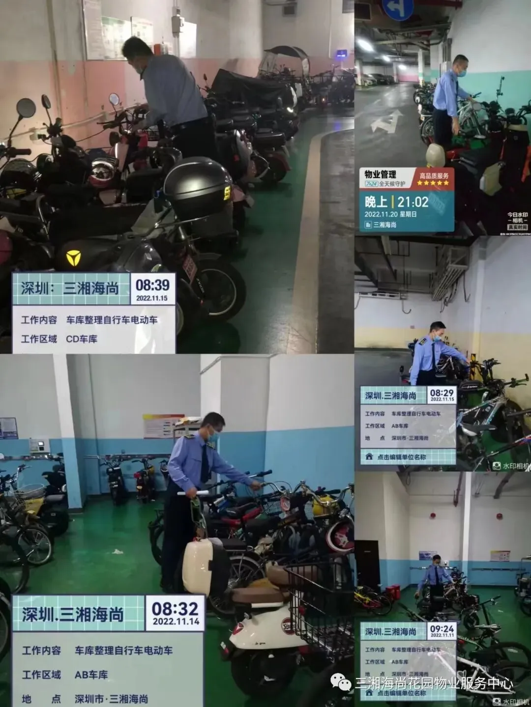 停车场业户单车整理,摆放整齐,提高场地使用率,方便更多业主车辆停放。