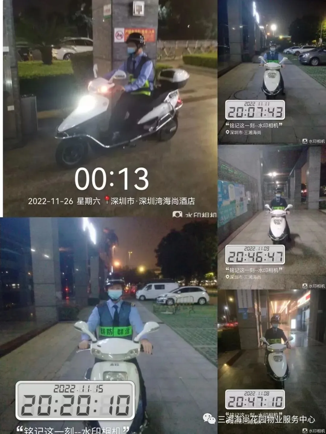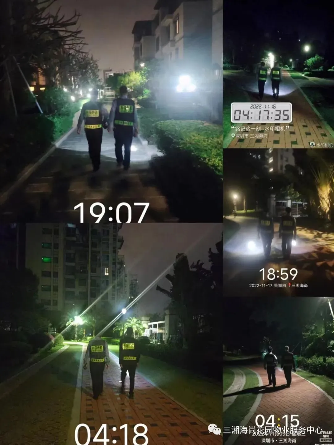 夜间巡逻,外围和园区内,不同时段全方位无死角的巡视,降低安全隐患,防止各类突发事件发生,为业主居家安全保驾护航。