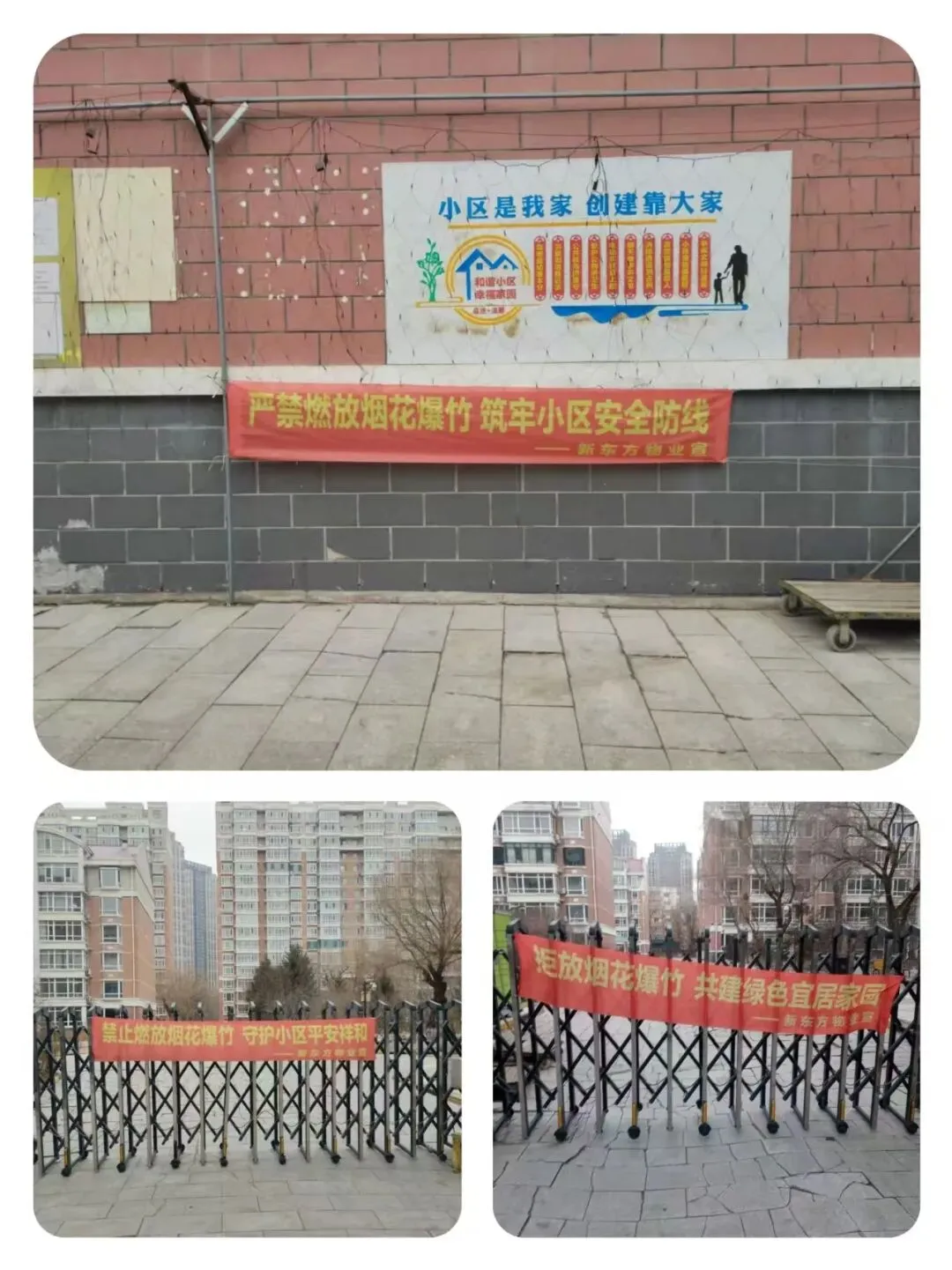 为保障小区节日期间的安全,防范火灾的发生,在节前物业在小区显著位置悬挂宣传条幅,并在业主群中发送温馨提示