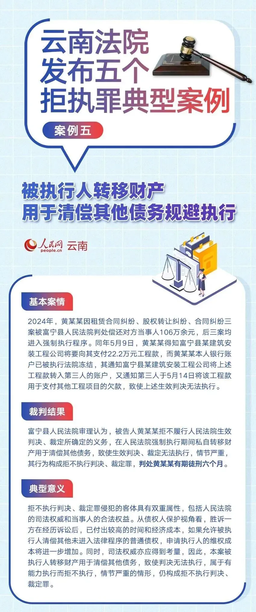 《被执行人转移财产用于清偿其他债务规避执行案》入选云南法院拒执罪典型案例