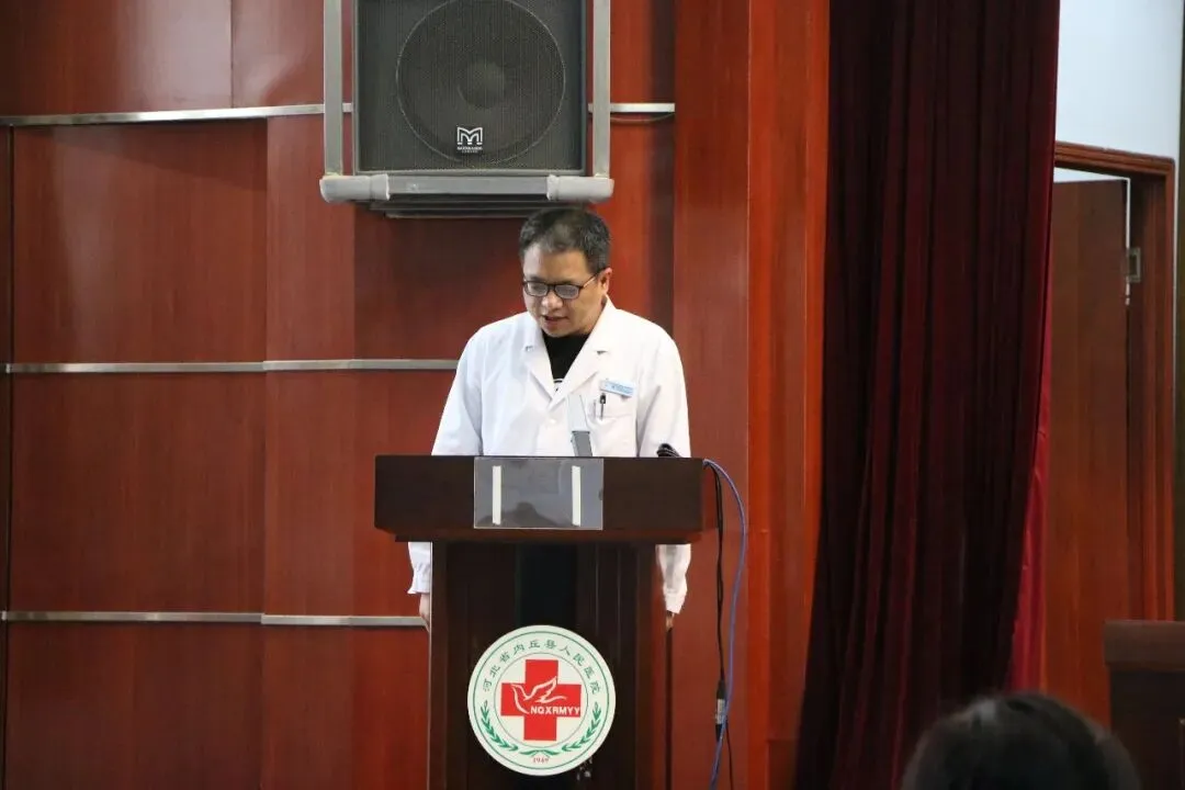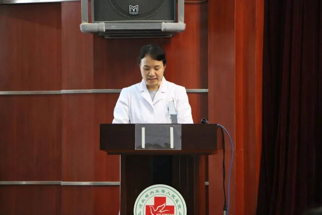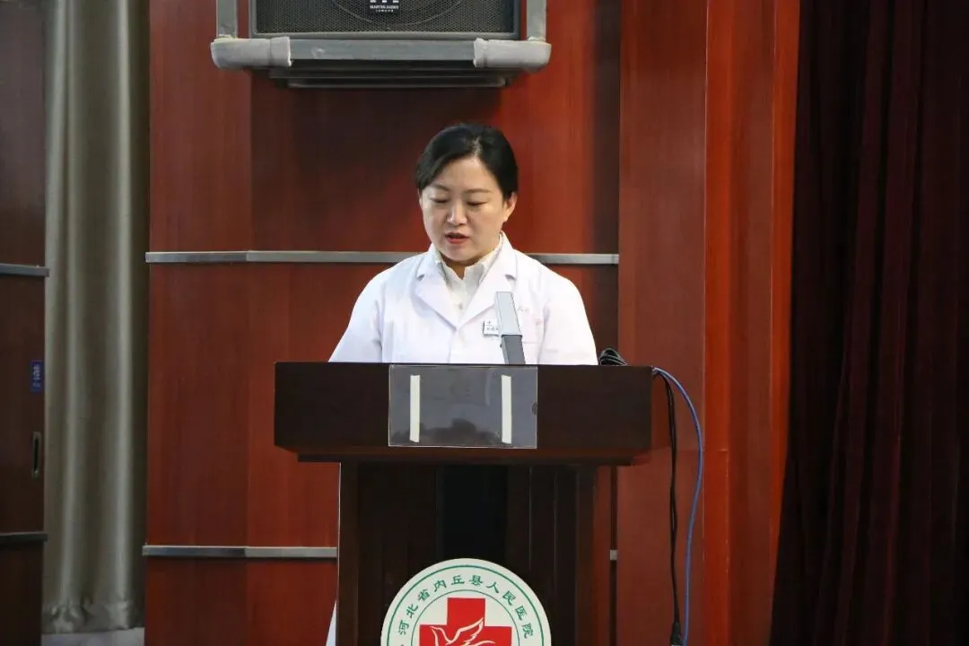 突出贡献、技术创新、先进科室等先进集体代表(从左往右依次):王长雪(内五科)、高山(医学影像科)、和慧敏(牙科)、房志伟(内七科)、侯雪珍(护理部)、郝继红(外四科)、高军芳(内二科)、和晓辉(超声科)、赵丽花(外一科)、王磊(内三科)
