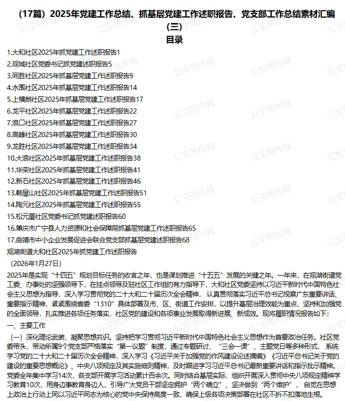 (17篇)2025年党建工作总结、抓基层党建工作述职报告、党支部总结素材汇编(三)