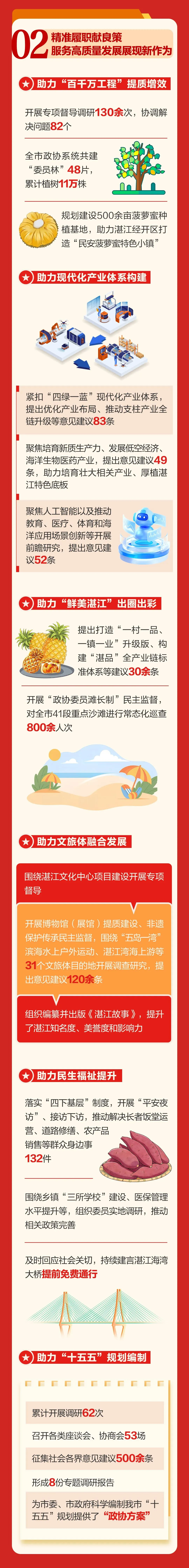来自全市各条战线、各个界别的400多名市政协委员肩负着全市人民的重托和期待,齐聚一堂,积极履行政治协商、民主监督、参政议政职能,共商发展大计,共谋务实良策,为推动湛江跨越式、高质量发展凝聚智慧和力量。