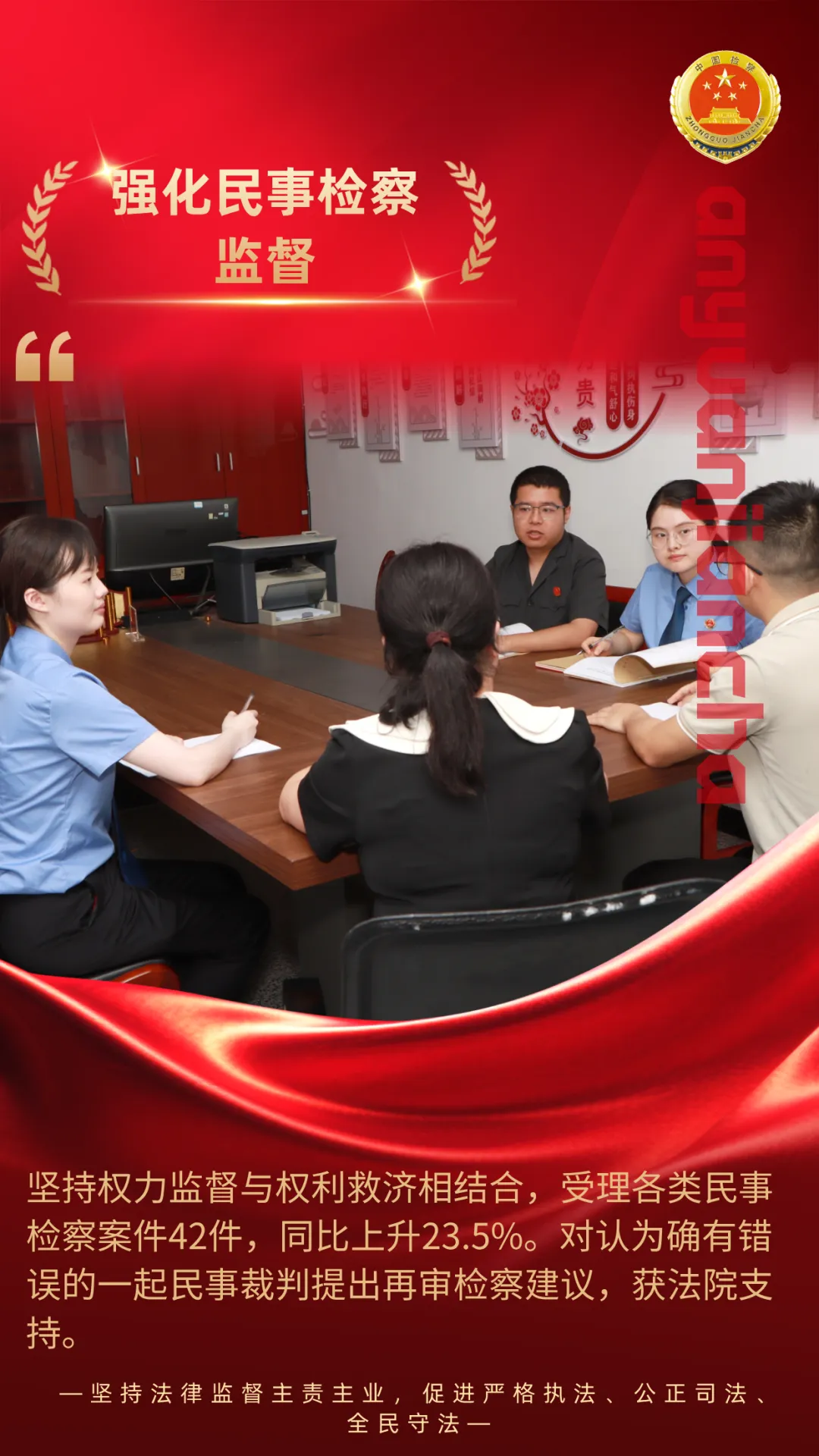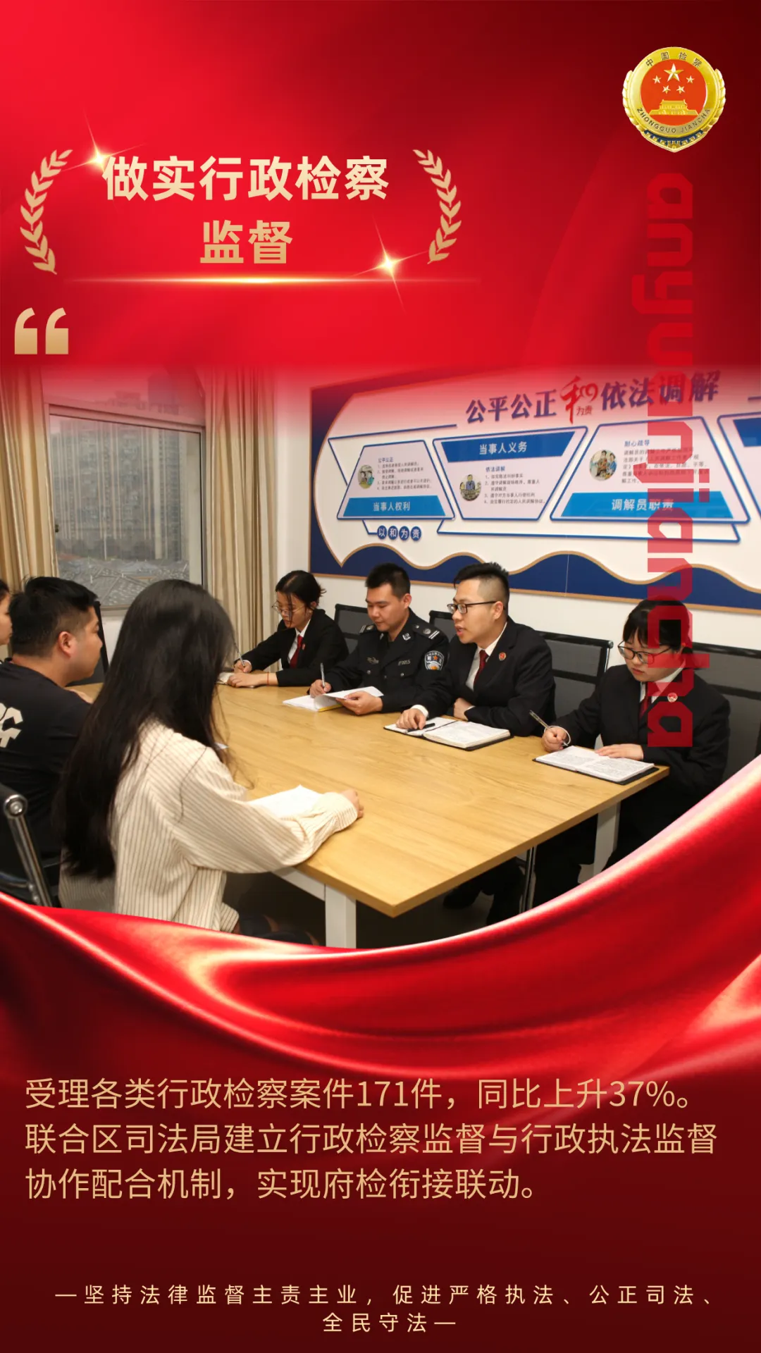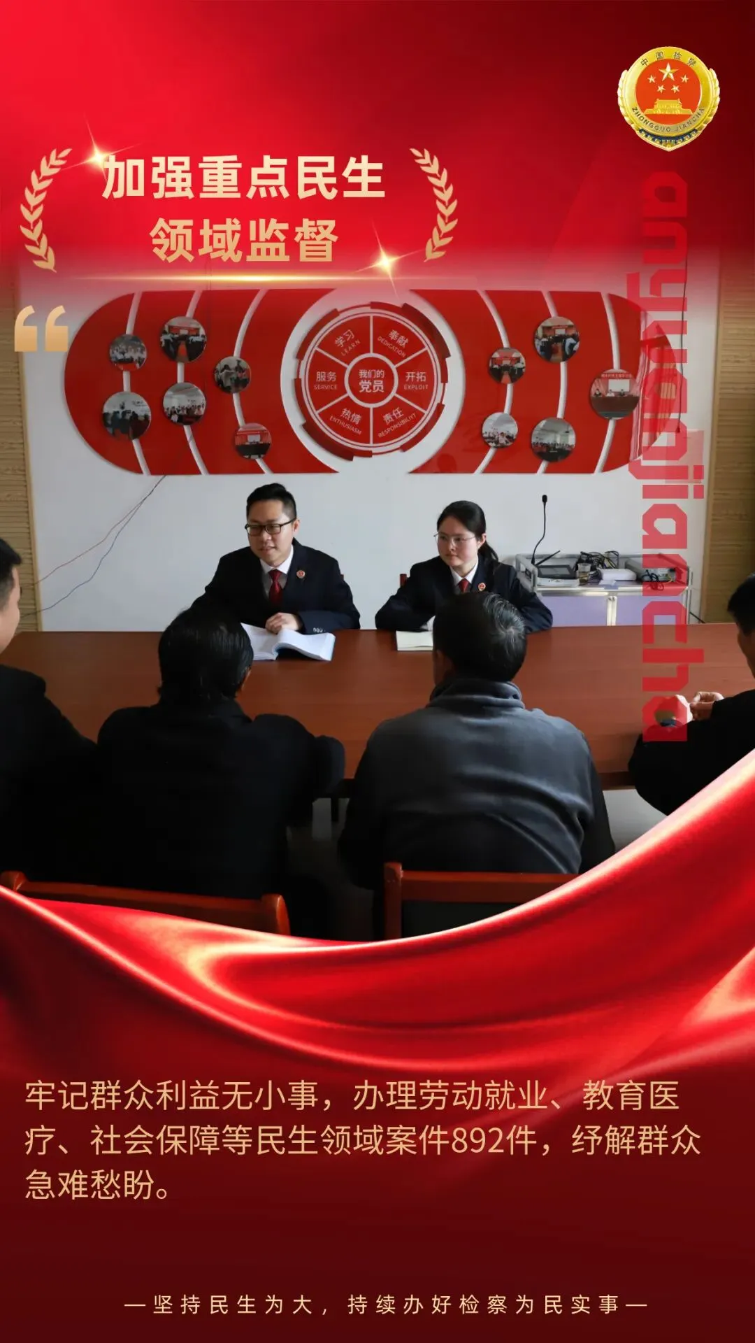 2025年,在区委和市检察院坚强领导下,在区人大及其常委会有力监督下,在区政府、区政协和社会各界关心支持下,区人民检察院坚持以习近平新时代中国特色社会主义思想为指导,深入学习贯彻党的二十大和二十届历次全会精神,聚焦“走在前、勇争先、善作为”目标要求,围绕区委纵深推进“三区同振 城乡融合”、聚力实施“六大工程”,依法全面履行法律监督职责,自觉为大局服务、为人民司法、为法治担当,有力保障高水平安全和高质量发展,持续做实检察为民,着力加强自身建设,各项检察工作取得新成效。一年来,共办理各类案件2019件,占全市办案总数40%,9个案件入选最高检、省检察院典型案例,5篇检察理论研究论文获奖,7个集体、31名个人获得市级以上荣誉,其中国家级3项。